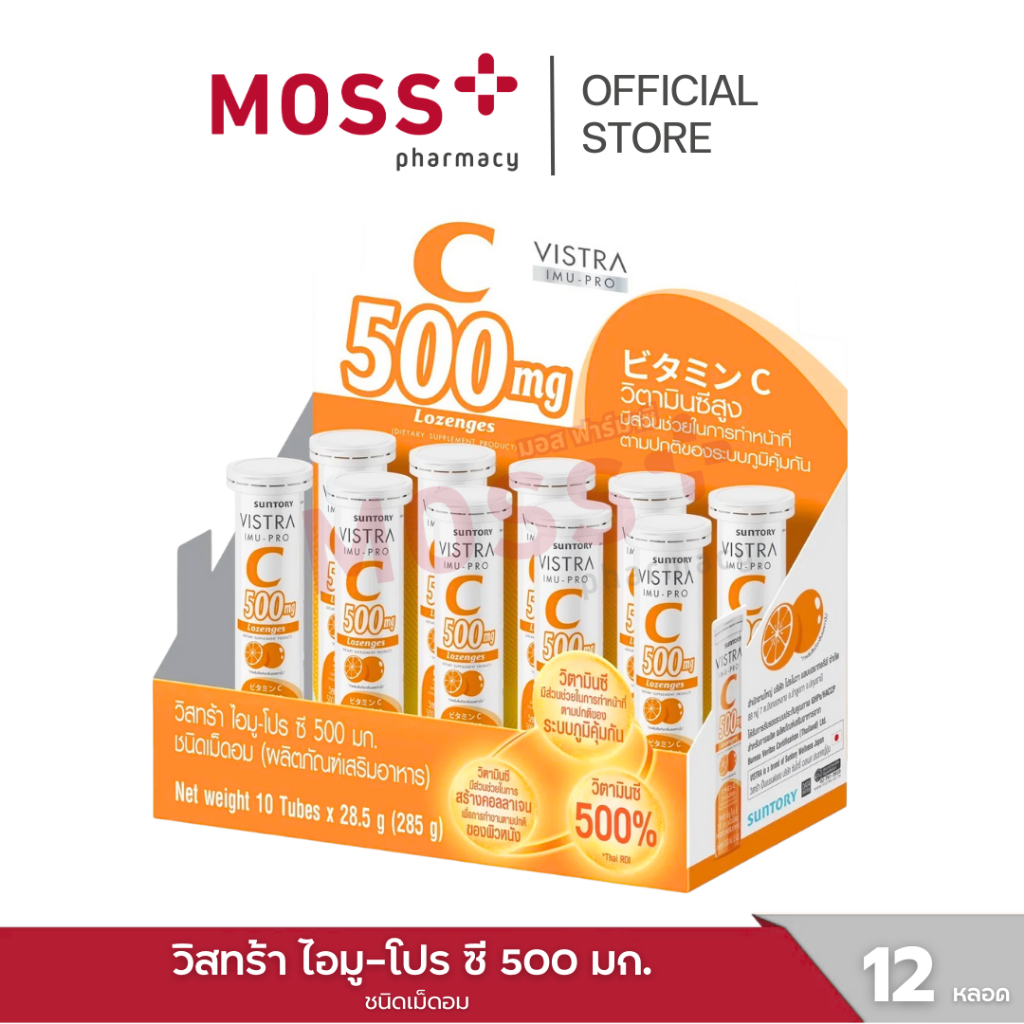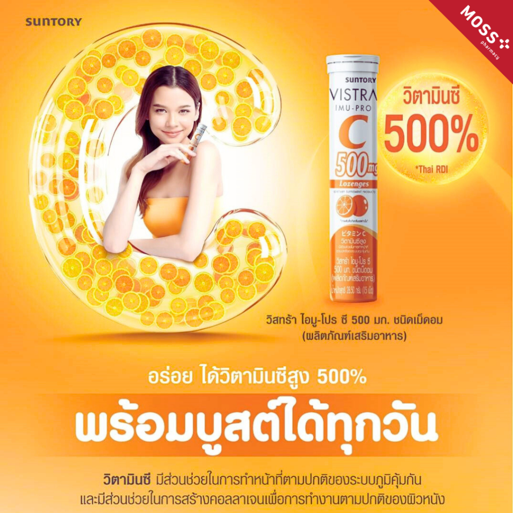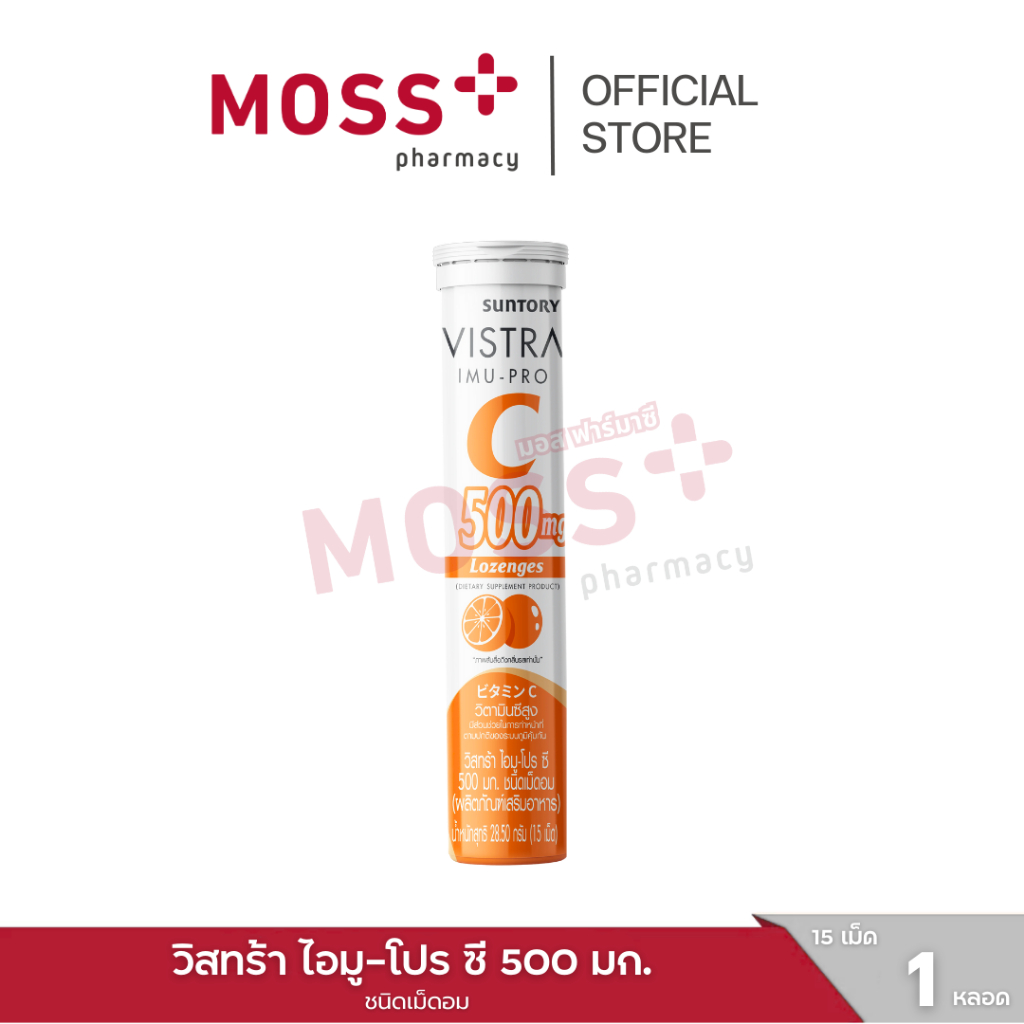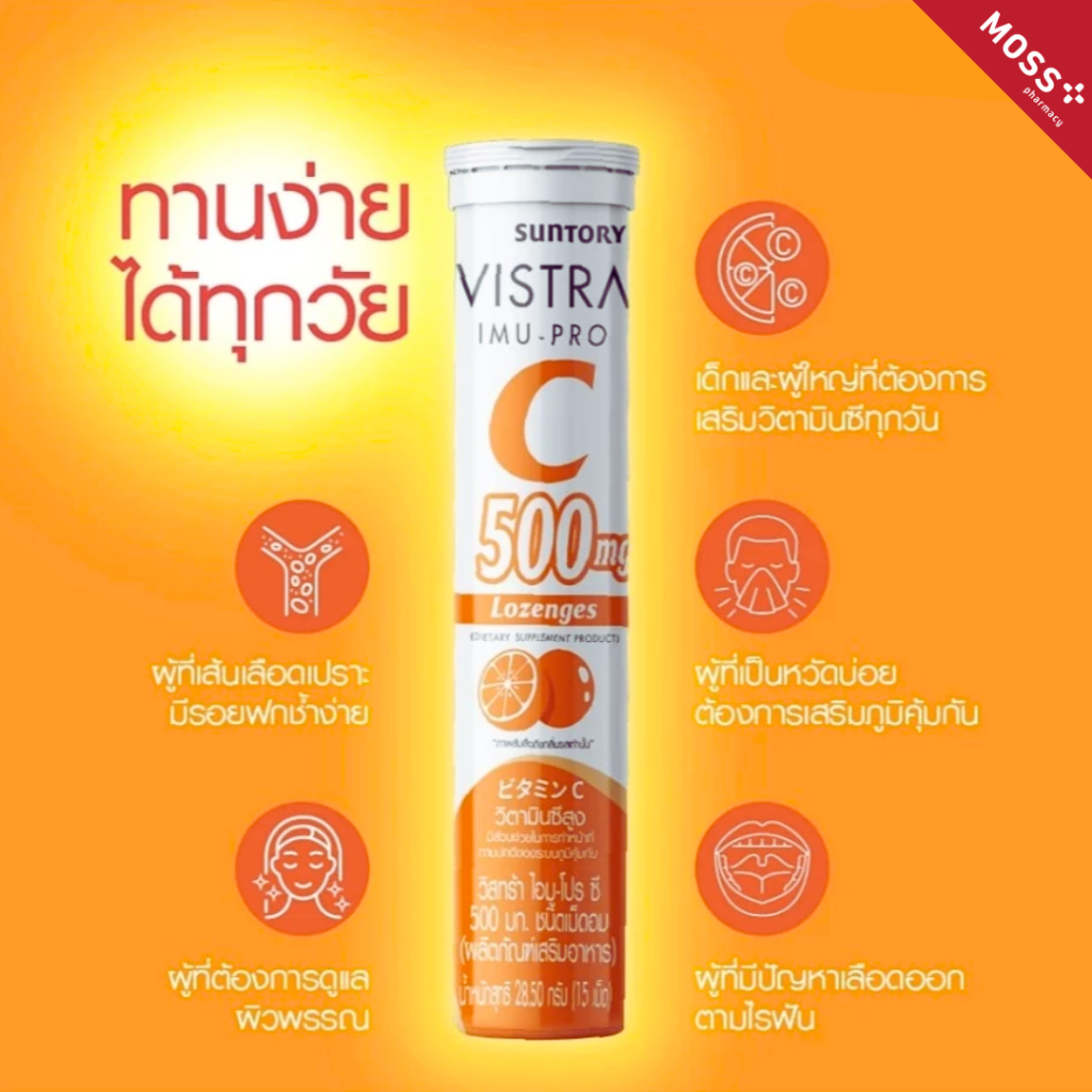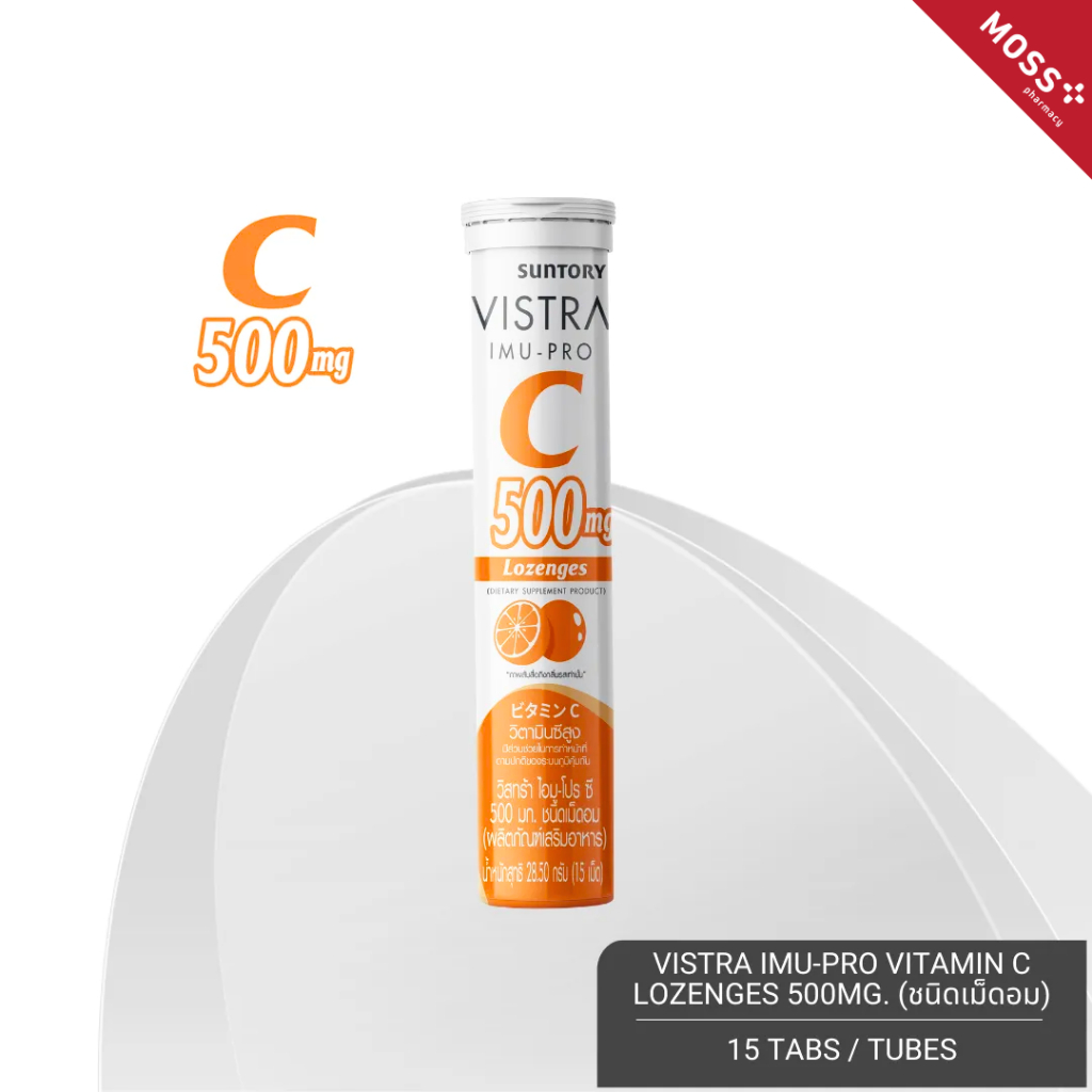 VISTRA IMU-PRO VITAMIN C 500mg Lozenges (วิสทร้า ไอมู-โปร ซี 500 มก.) ชนิดเม็ดอมวิตามินซี บรรจุ 15 เม็ด/หลอด