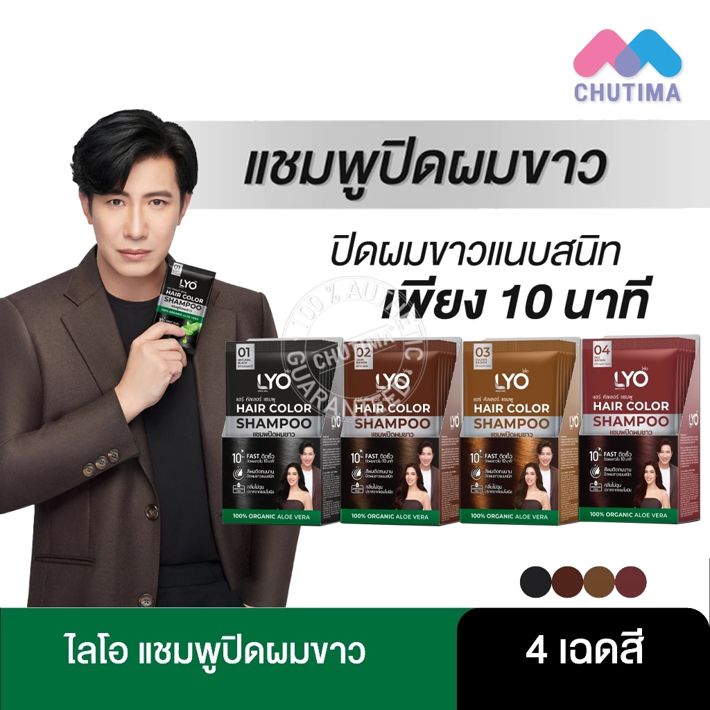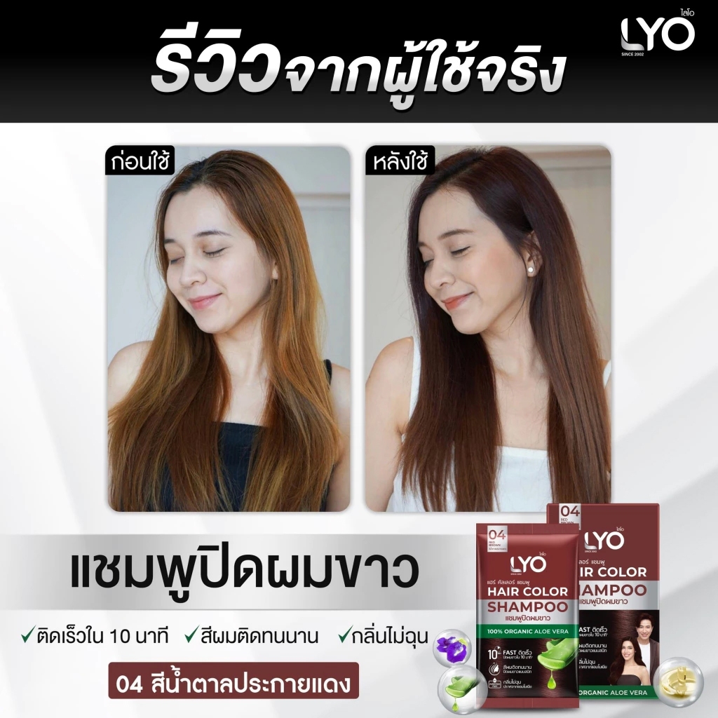 (กล่อง 6 ซอง) แชมพูปิดผมขาว ไลโอ แฮร์ คัลเลอร์ แชมพู ขนาด 30 มล. x6 LYO Hair Color Shampoo 30 ml. x6