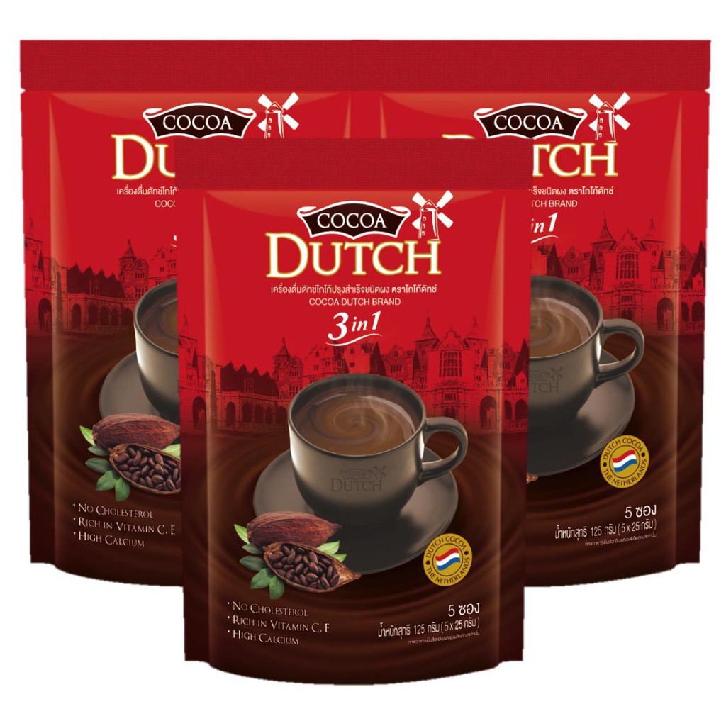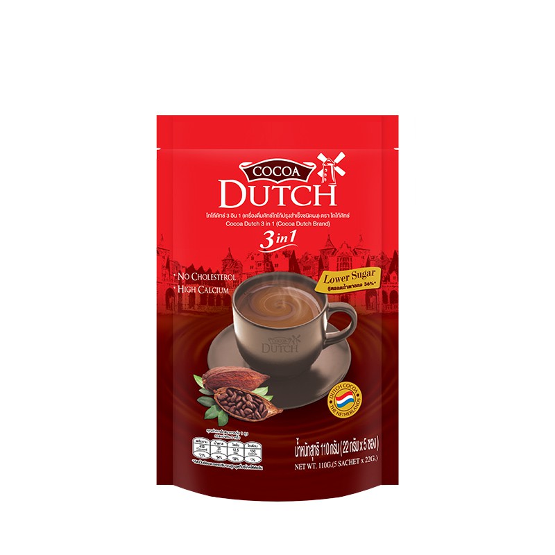 ✅ Cocoa Dutch 3 in 1 บรรจุ 5 ซอง (22g x 5 ซอง) โกโก้ดัทช์ พร้อมชง 3 อิน 1 สูตรน้ำตาลน้อย