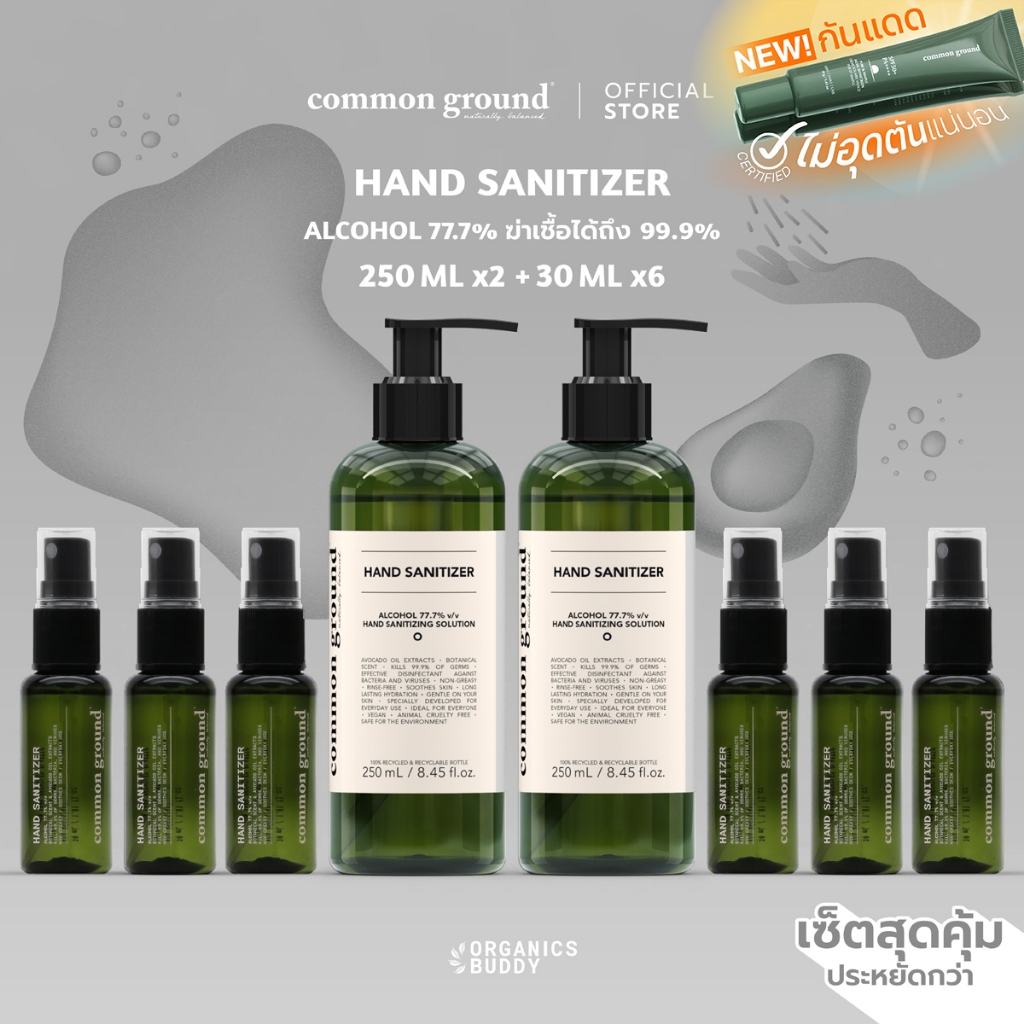 [เซ็ท] Common Ground Alcohol Hand Sanitizer 250mlx2 + Spray 30mlx6 แอลกอฮอล์ 77.7%