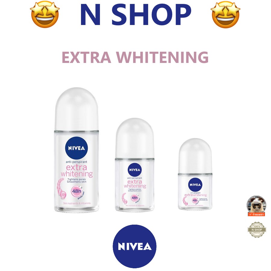 🌟 ลูกกลิ้ง โรลออน เอ็กซ์ตร้า ไวท์เทนนิ่ง ระงับกลิ่นใต้วงแขน นีเวีย NIVEA EXTRA WHITENING ROLL ON