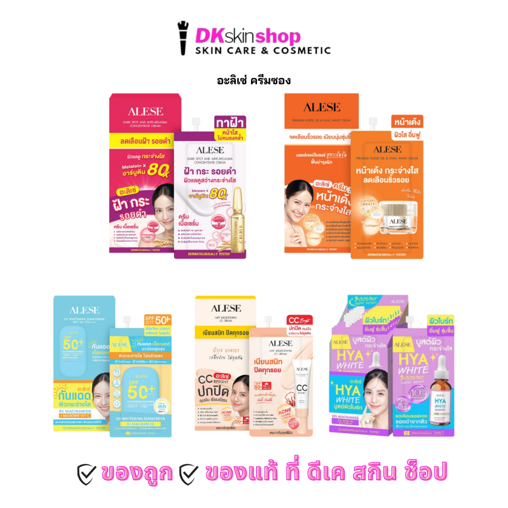 อะลิเซ่ ครีมน้ำมันม้า/เซรั่ม/กันแดด/ซีซีไบร์ท/กันแดด (ยกกล่อง) ALESE CC Bright/Premium Horse Oil/Miracle Serum/Sunscreen