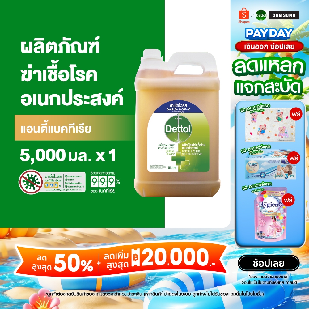 (แพ็กเกจอยู่ระหว่างการเปลี่ยนแปลง) Dettol น้ำยาฆ่าเชื้อเดทตอล น้ำยาฆ่าเชื้อโรค ไฮยีนมัลติ-ยูส น้ำยาถูพื้น 5000 มล. X1