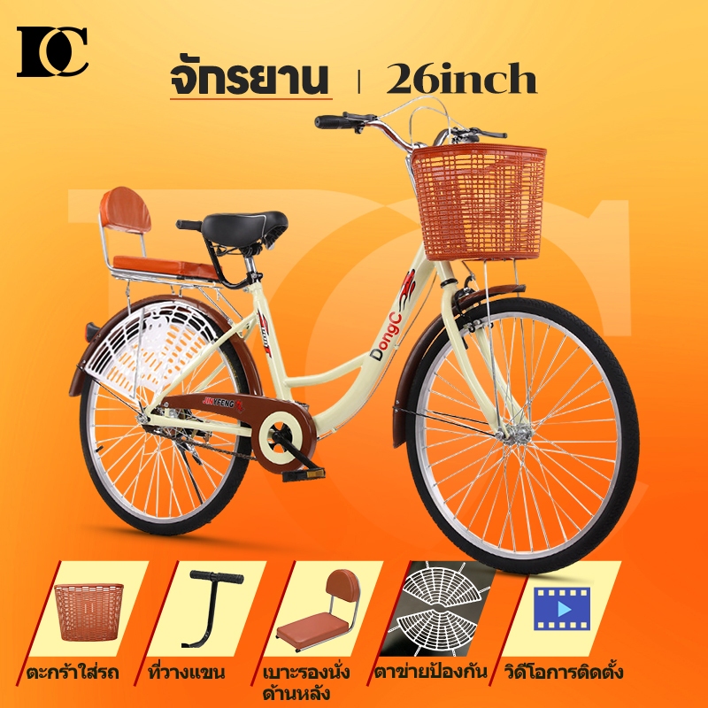 DongCจักรยาน 26นิ้ว จักรยานผู้ใหญ่ ญี่ปุ่น จักรยานแม่บ้าน เบาะนั่งสบายพร้อมตะกร้า จักรยานสไตล์วินเทจ จักรยานสำหรับคนทำงา