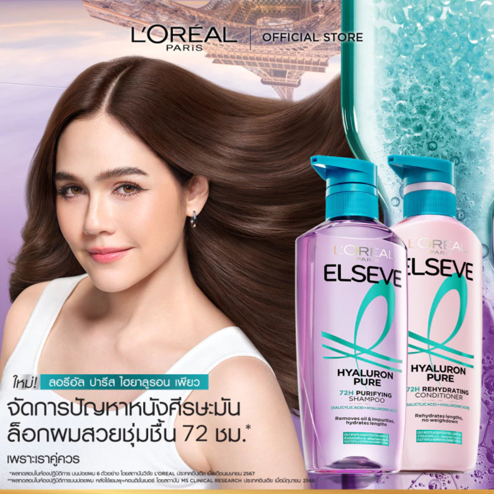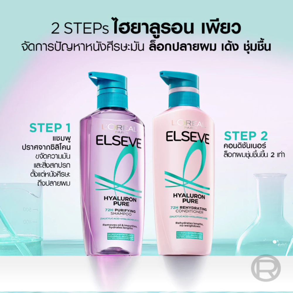 L'OREAL ลอรีอัล ปารีส เอลแซฟ ไฮยาลูรอน เพียว 72เอช เพียวริฟายอิ้ง แชมพู/ครีมนวด
