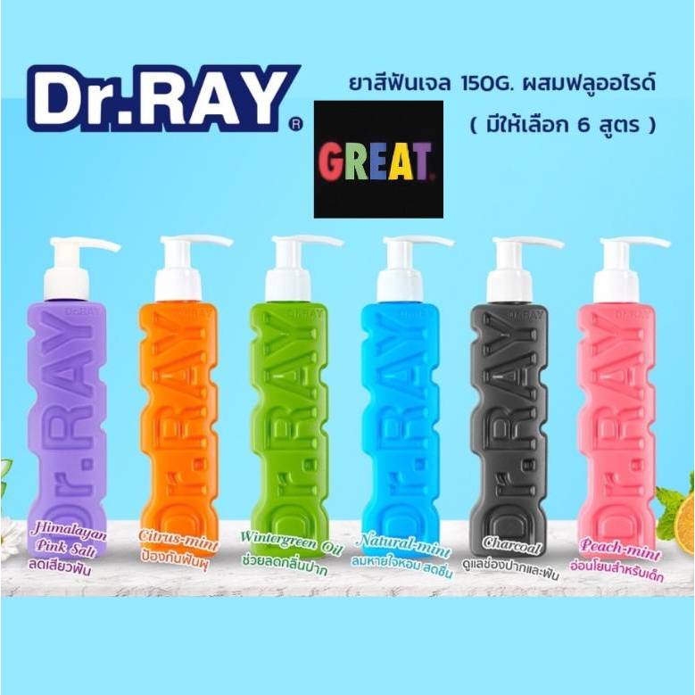 Dr.Ray ยาสีฟันเจลใหญ่ 150 ml ผสมฟลูออไรด์ มี 6 สูตร ราคาต่อ 1 ชิ้น