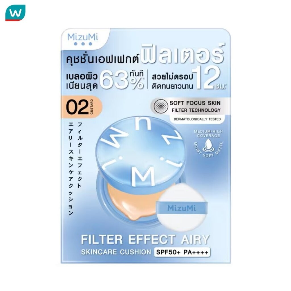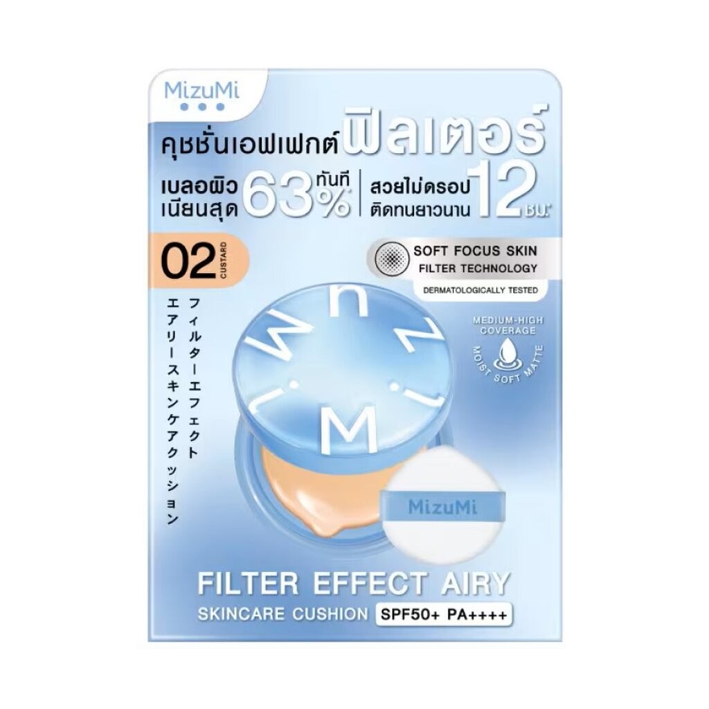 MizuMi มิซึมิ ฟิลเตอร์ เอฟเฟกต์ แอรี่ สกินแคร์ คุชชั่น SPF50+ PA++++02 คัสตาร์ด 15 กรัม
