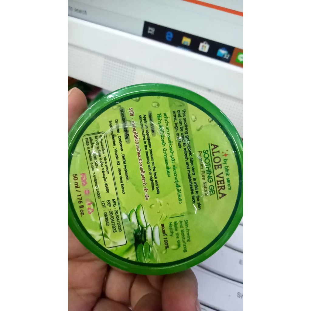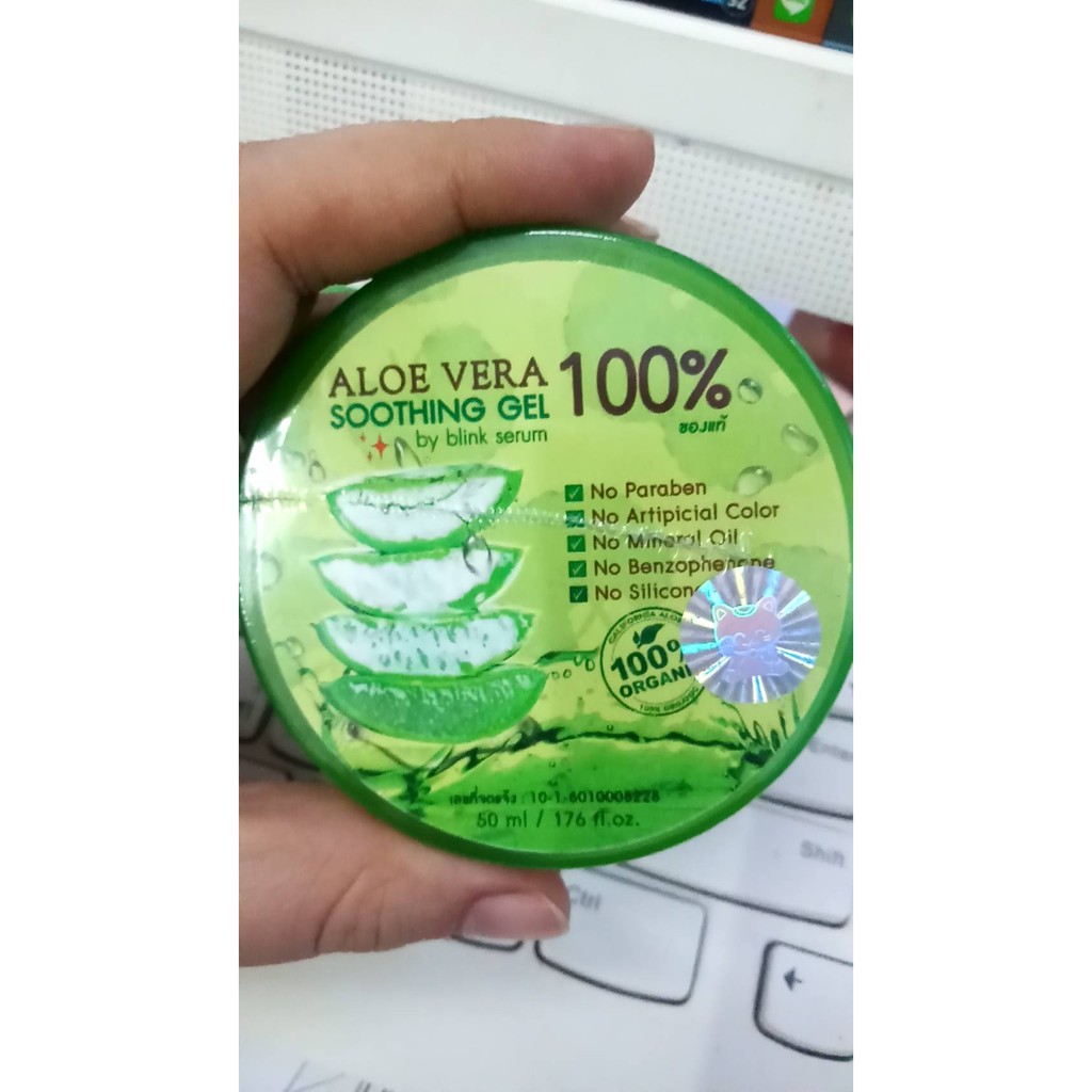 100% Aloe vera soothing gel 50ml. 1ตลับ เจล ว่านหางจรเข้ 100% เจลว่านหางจรเข้
