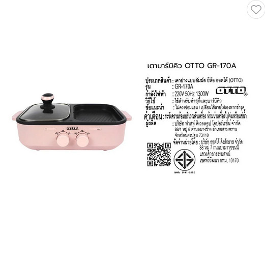 เตาบาร์บิคิว OTTO GR-170A สีชมพู