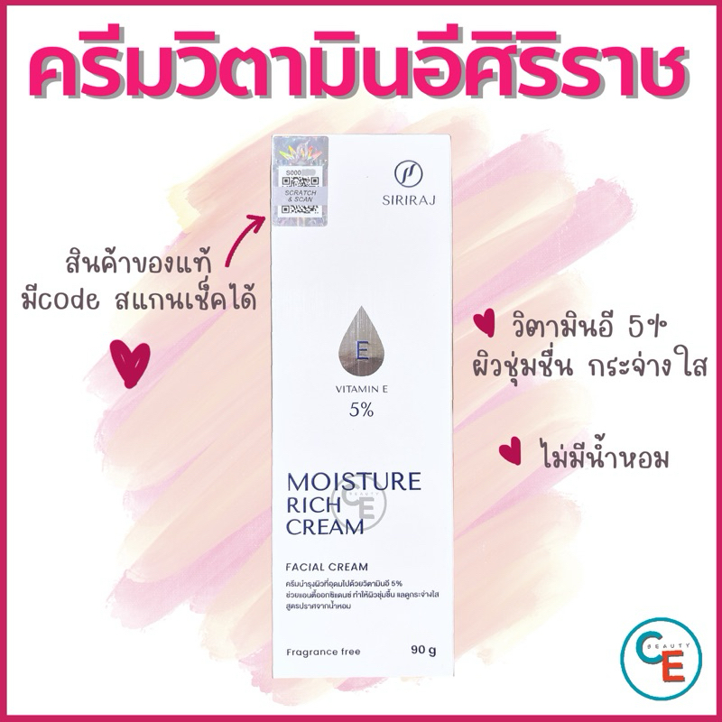 ศิริราช ครีมบำรุงผิวหน้า วิตามินอี 5% Moisturizer rich cream Vitamin E มอยซ์เจอร์ ริช ให้ความชุ่มชื่น