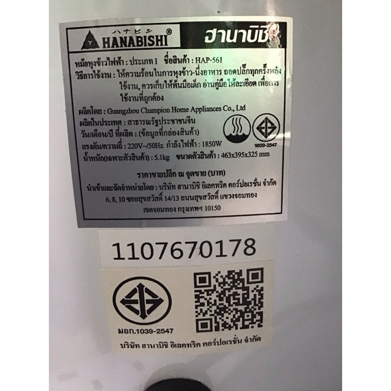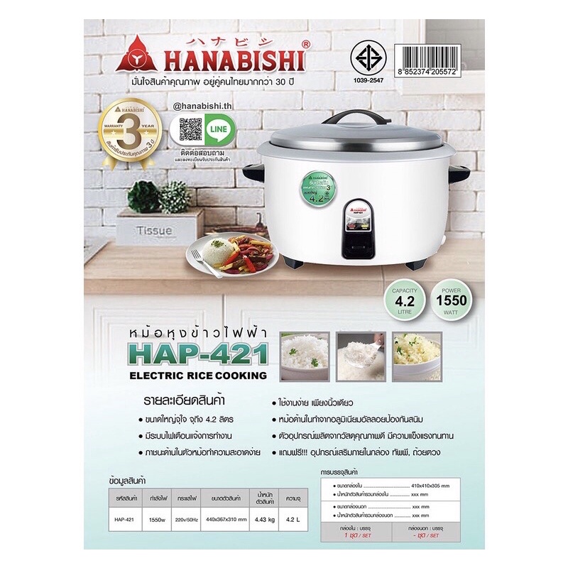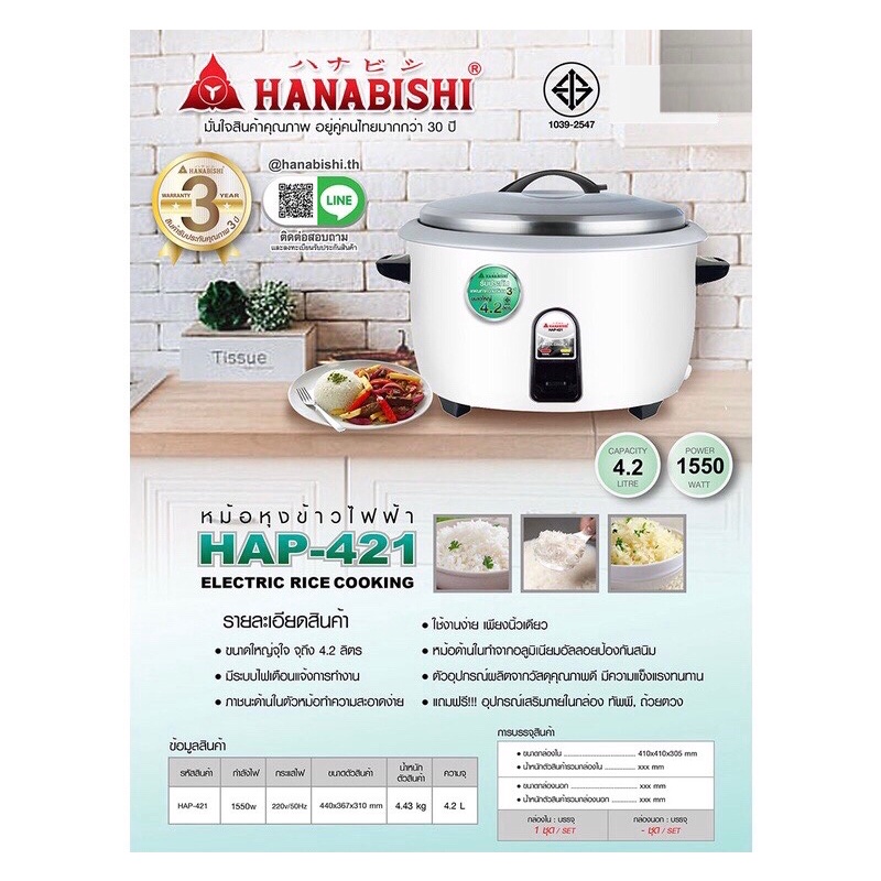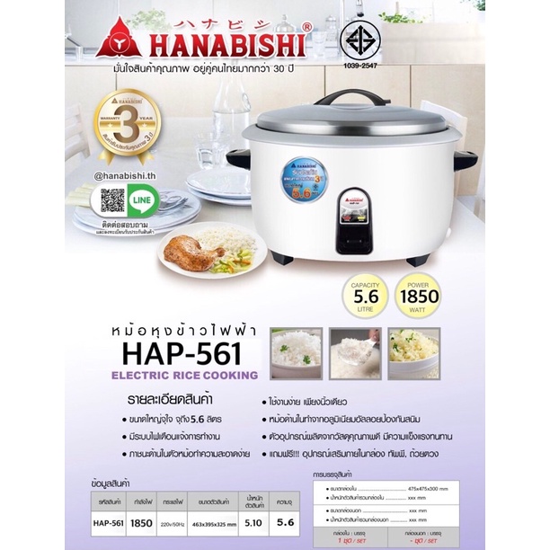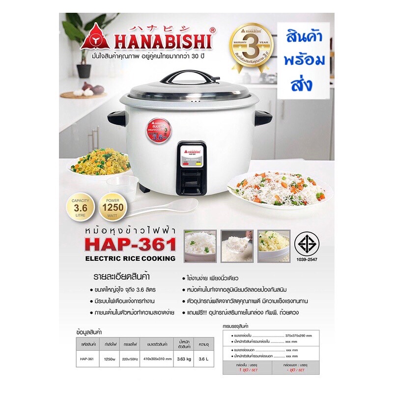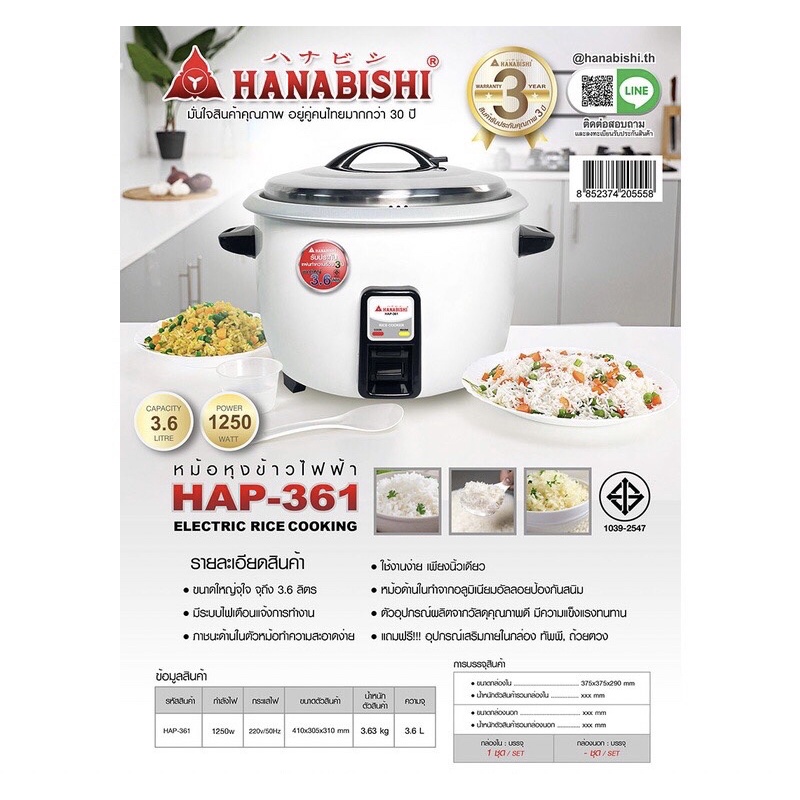 HANABISHI/SMARTHOME หม้อหุงข้าวไฟฟ้า รุ่น HAP-781 / HAP-561 / HAP-421 / HAP-361 / SM-CRC3500