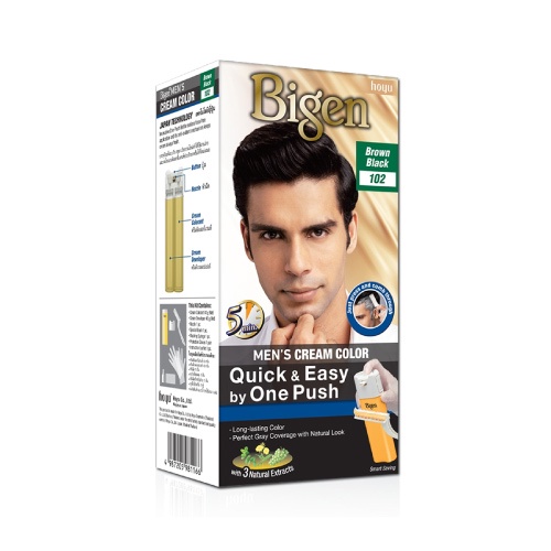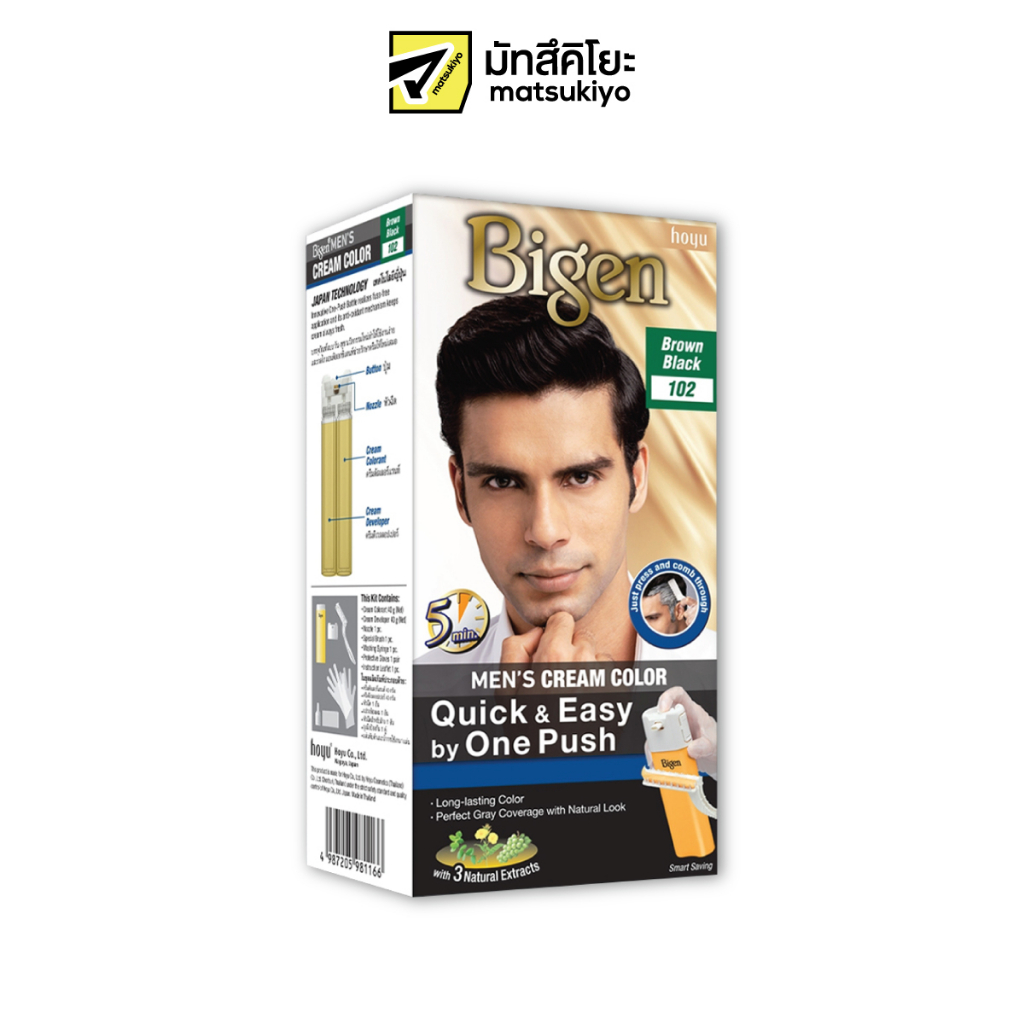 Bigen Men One Push Black Brown Hair Color Cream 102 บีเง็นครีมเปลี่ยนสีผมเมนส์วันพุชดำน้ำตาล 102
