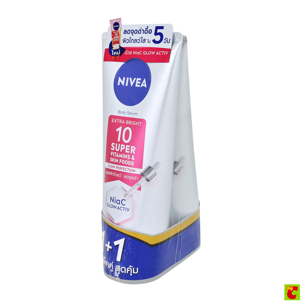 นีเวีย เอ็กซ์ตร้า ไบรท์ 10 ซุปเปอร์ วิตามิน แอนด์ สกิน ฟู้ด เซรั่ม เอสพีเอฟ 15 300 มล. แพ็ค 1+1