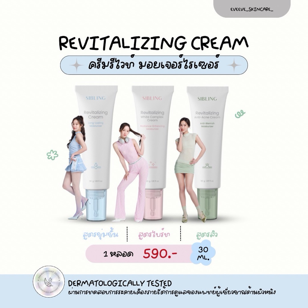 ครีมรีไวท์(มอยซ์เจอร์ไรเซอร์) 3 สูตร เสริมความแข็งแรง ป้องกันการเกิดสิว เพิ่มความชุ่มชื่น