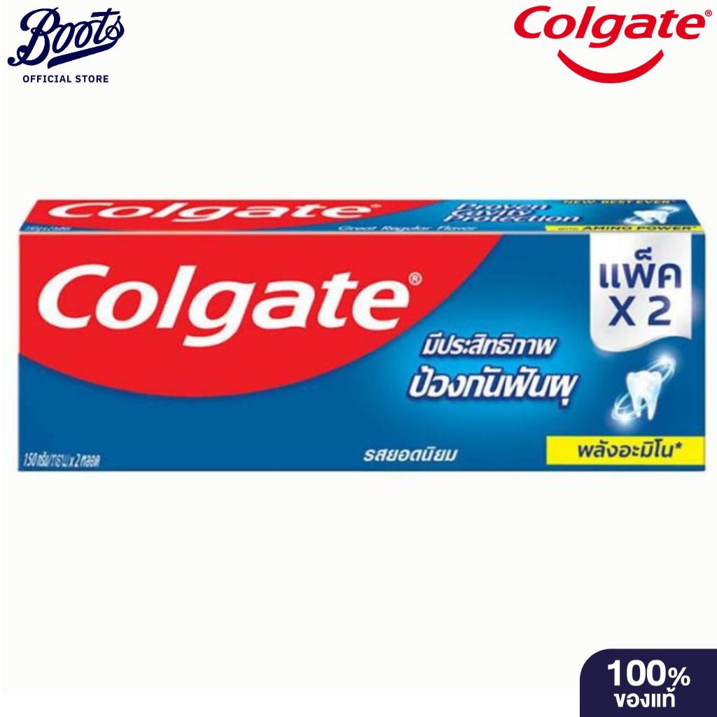 Colgate คอลเกต ยาสีฟัน ยอดนิยม 150 กรัม 2 หลอด ฟรี 100 กรัม 1 หลอด