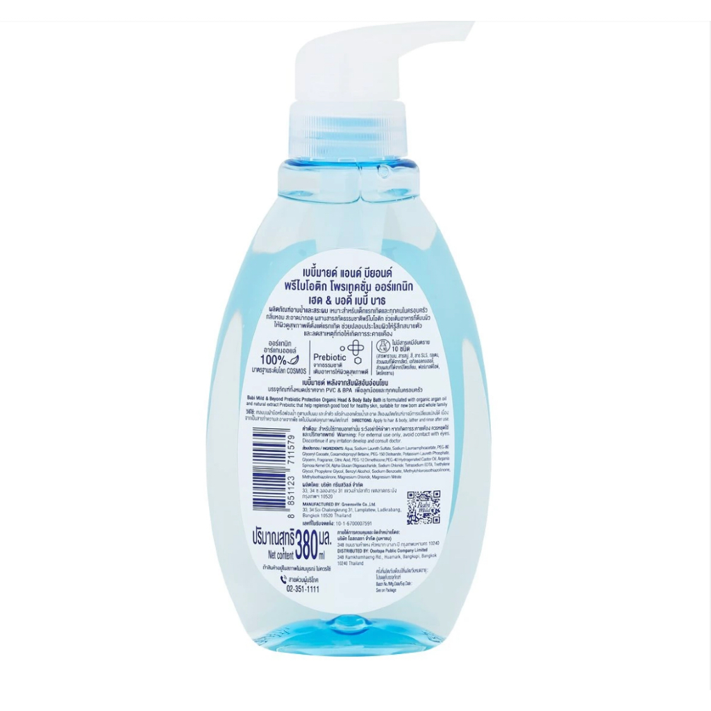 etbeauty เบบี้มายด์ & บียอนด์ พรีไบโอติก โพรเทคชั่น ออร์แกนิก เฮด & บอดี้ เบบี้ บาธ 380 มล. x1ขวด