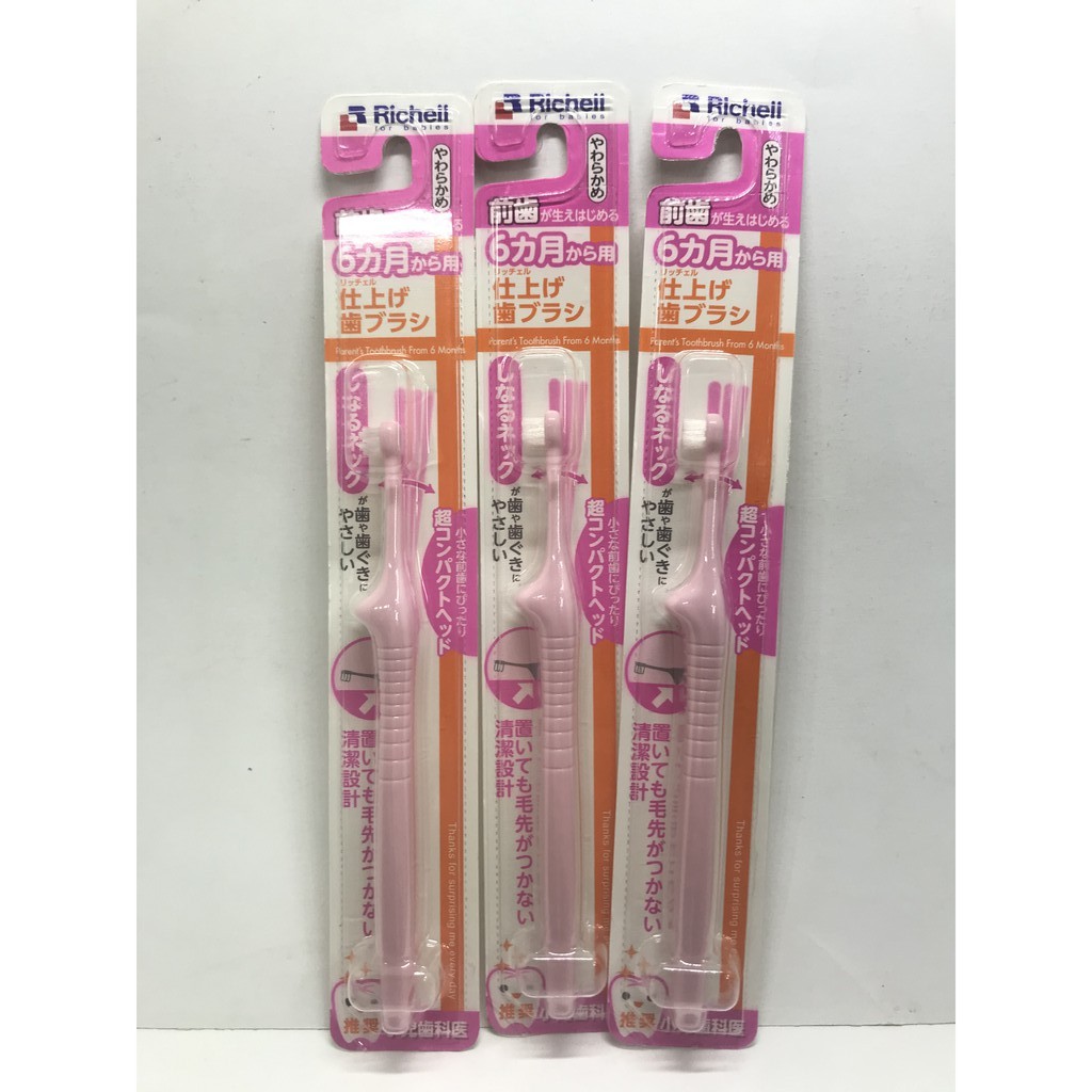Richell (ริเชล) แปรงสีฟันเด็ก 6 เดือนขึ้นไป หัวแปรงกลมเล็ก ป้องกันการกัดและกระแทกเหงือกBaby Toothbrush for 6 Months Pink