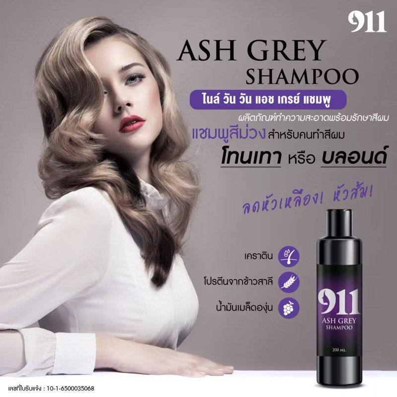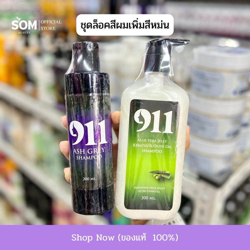 911 ชุดล็อคสีผมเพิ่มสีหม่น แชมพูม่วง+แชมพูลดกลิ่นเคมี