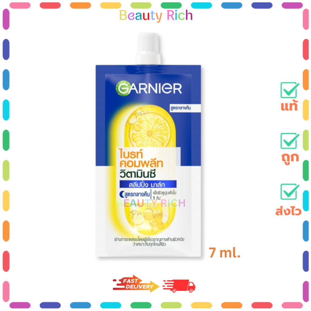 (1 ซอง) Garnier การ์นิเย่ ไบรท์ คอมพลีม วิตามินซี สลิปปิ้ง มาส์ก (7 ml.)