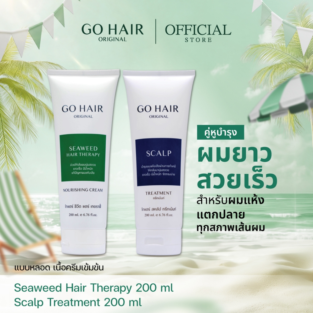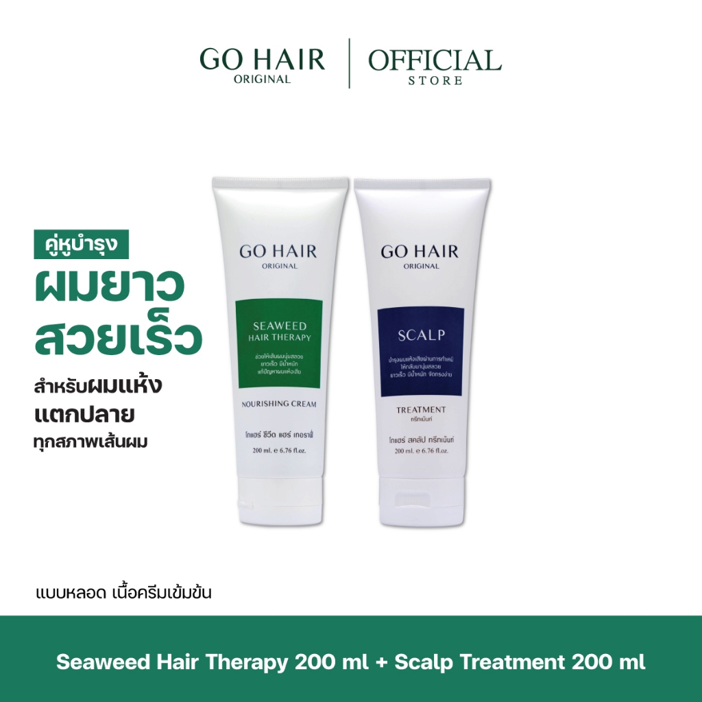 [เซ็ตบำรุงผมยาวเร็ว] GO HAIR Scalp Treatment 200ml + Seaweed Hair Therapy 200ml โกแฮร์ เซ็ตเร่งผมยาว ทรีทเมนท์ อาหารผม