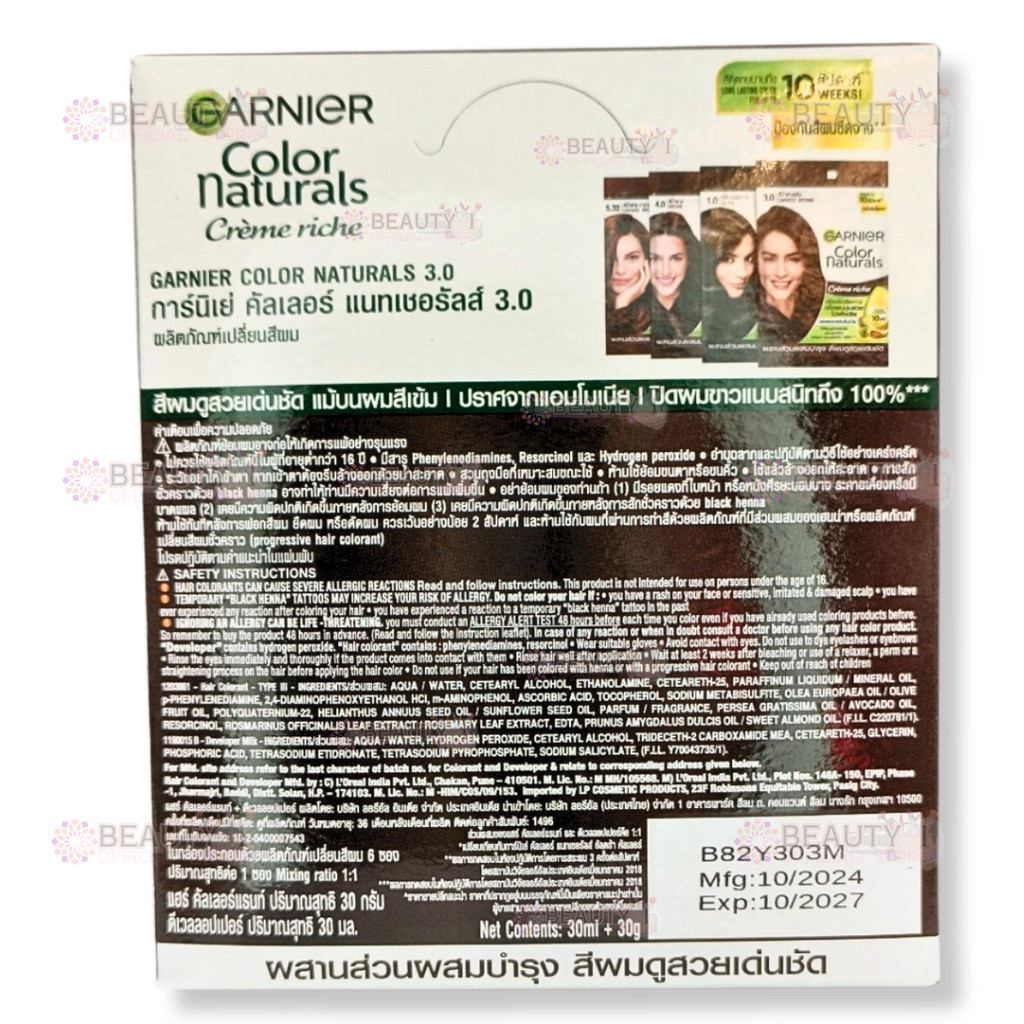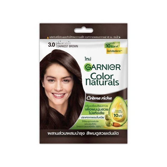 1 ซอง #3.0 น้ำตาลเข้ม Garnier การ์นิเย่ คัลเลอร์ เนเชอรัลส์ ซอง 60มล. แชมพูเปลี่ยนสีผม สีติดทนนาน ป้อง กันสีผมซีดจาง