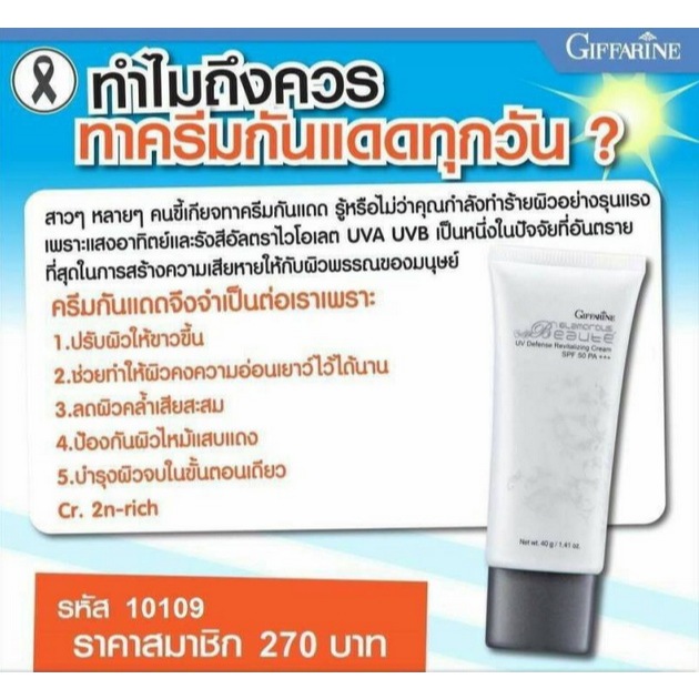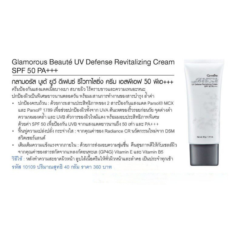 ครีมกันแดด กิฟฟารีน กลามอรัส บูเต้ ยูวี ครีม SPF50 PA+++ ครีมป้องกันแสงแดดเนื้อบางเบา สบายผิว ไร้คราบขาวและความเหนอะหนะ