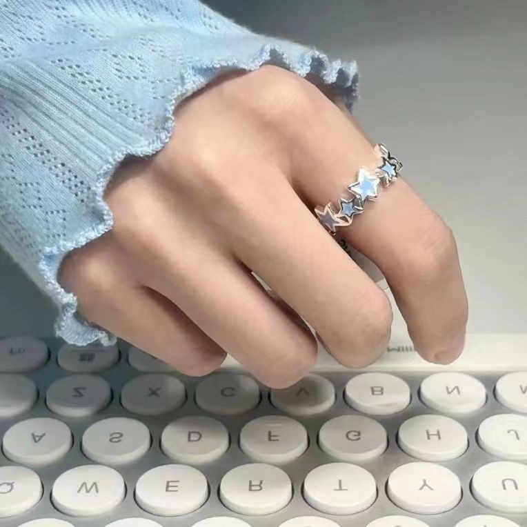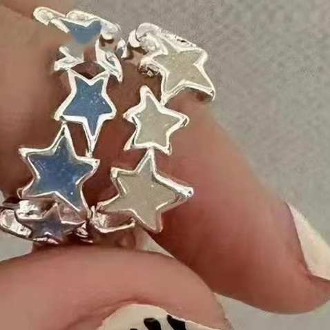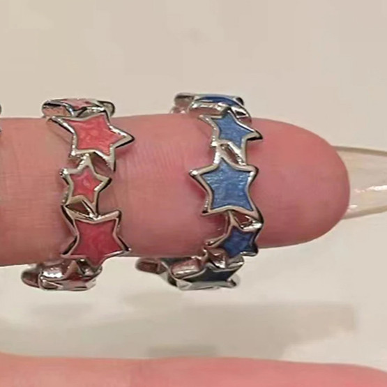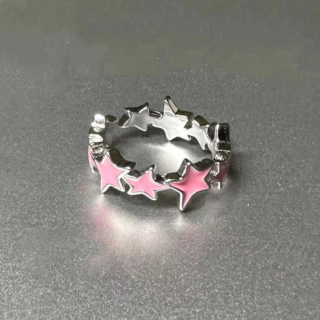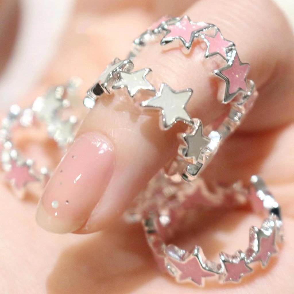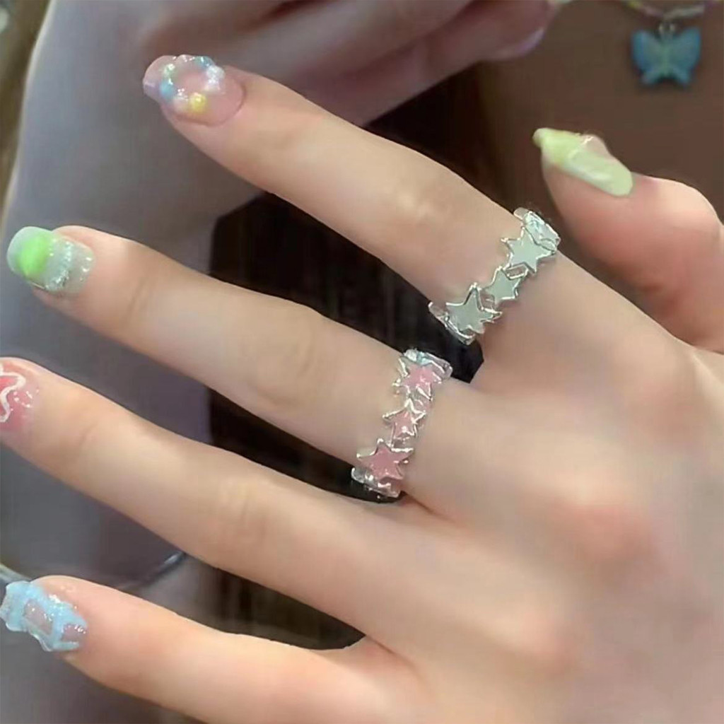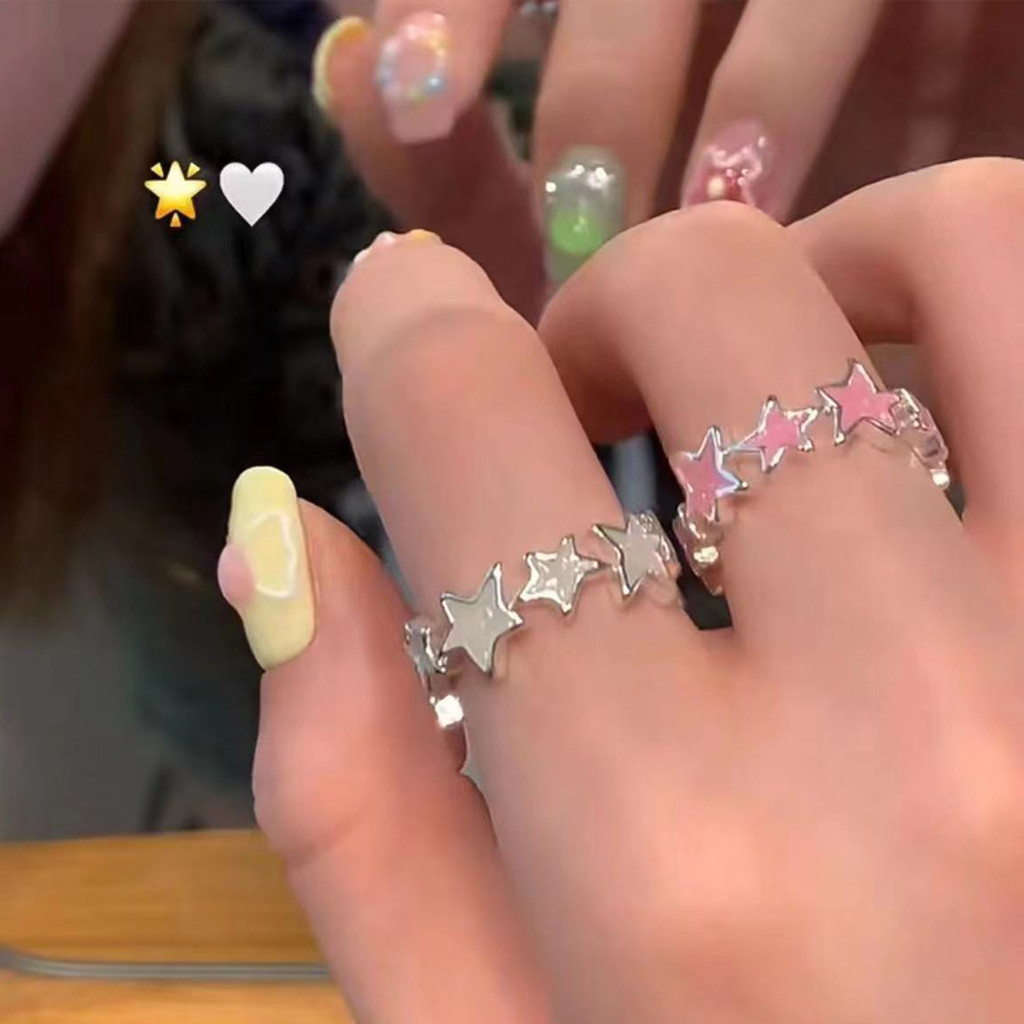 【YUE】แฟชั่นเกาหลีสีชมพูดาวแหวนคู่ผู้หญิงสาวหวานปรับแหวนเพื่อนผิดปกติความงาม