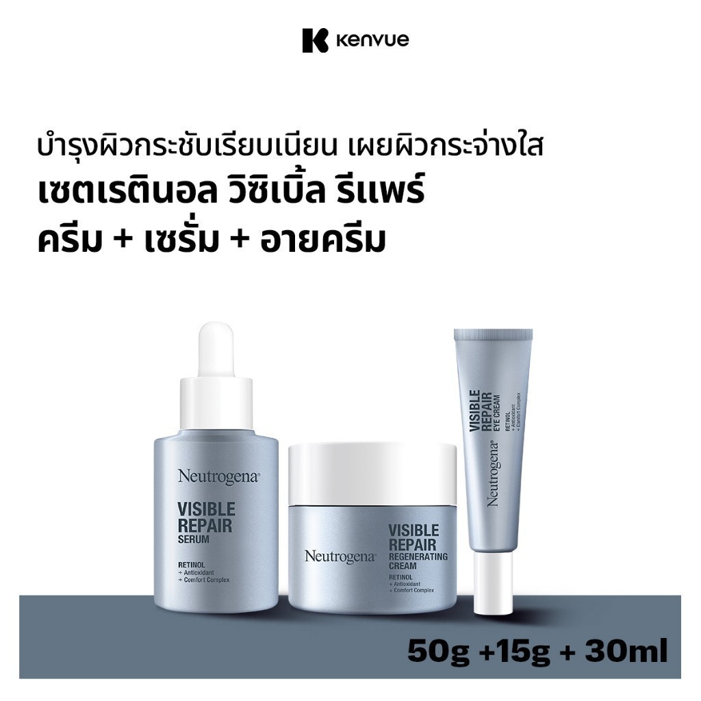 [เซ็ต] นูโทรจีนา วิซิเบิล รีแพร์ รีเจเนเรติ้ง ครีม 50ก + เซรั่ม 30มล + รีแพร์ อาย ครีม 15ก Neutrogena Visible Repair Set