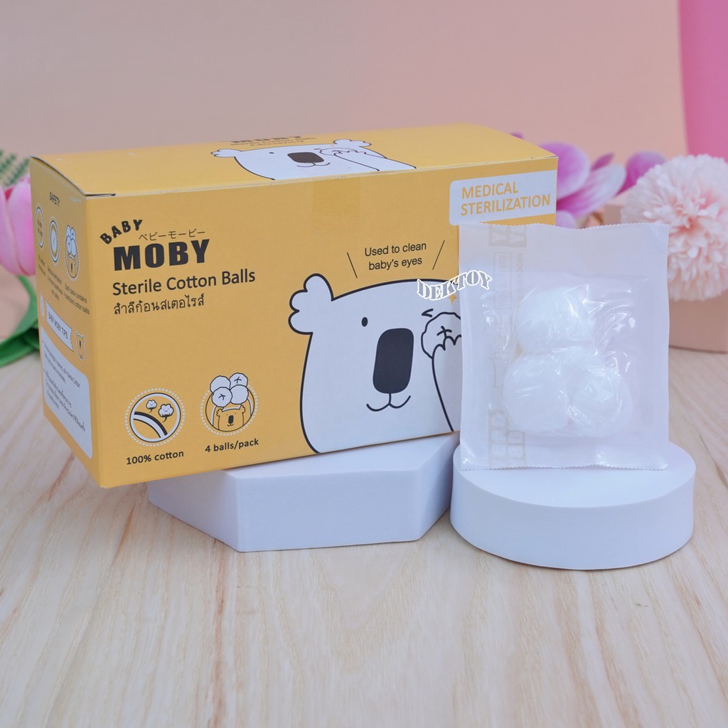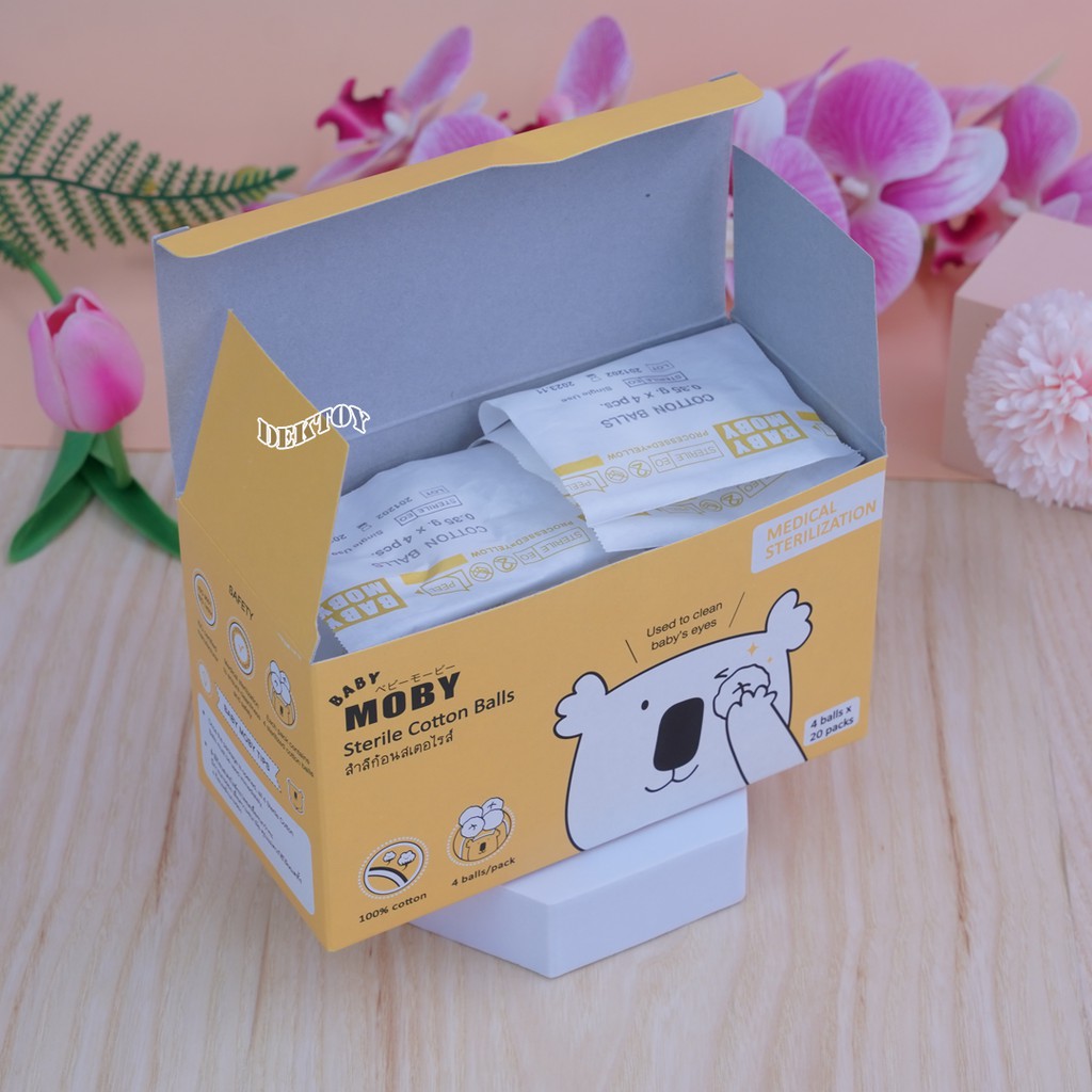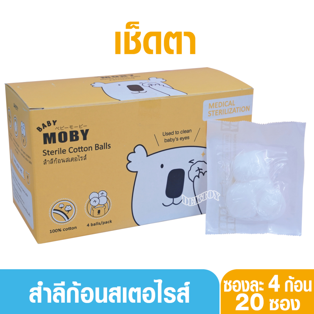 Baby moby เบบี้โมบี้ สำลีก้อนเช็ดตาสเตอไรส์ แบบซอง จำนวน 4 ก้อน X 20 ซอง