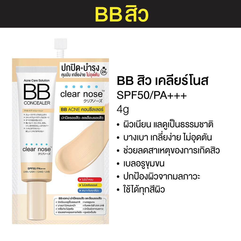 [6ซอง/ราคาส่ง] บีบี เคลียร์โนส Clear Nose BB สำหรับคนเป็นสิว SPF50+ PA4+ ปกปิดดี ไม่อุดตัน คุมมัน (4g./1ซอง)
