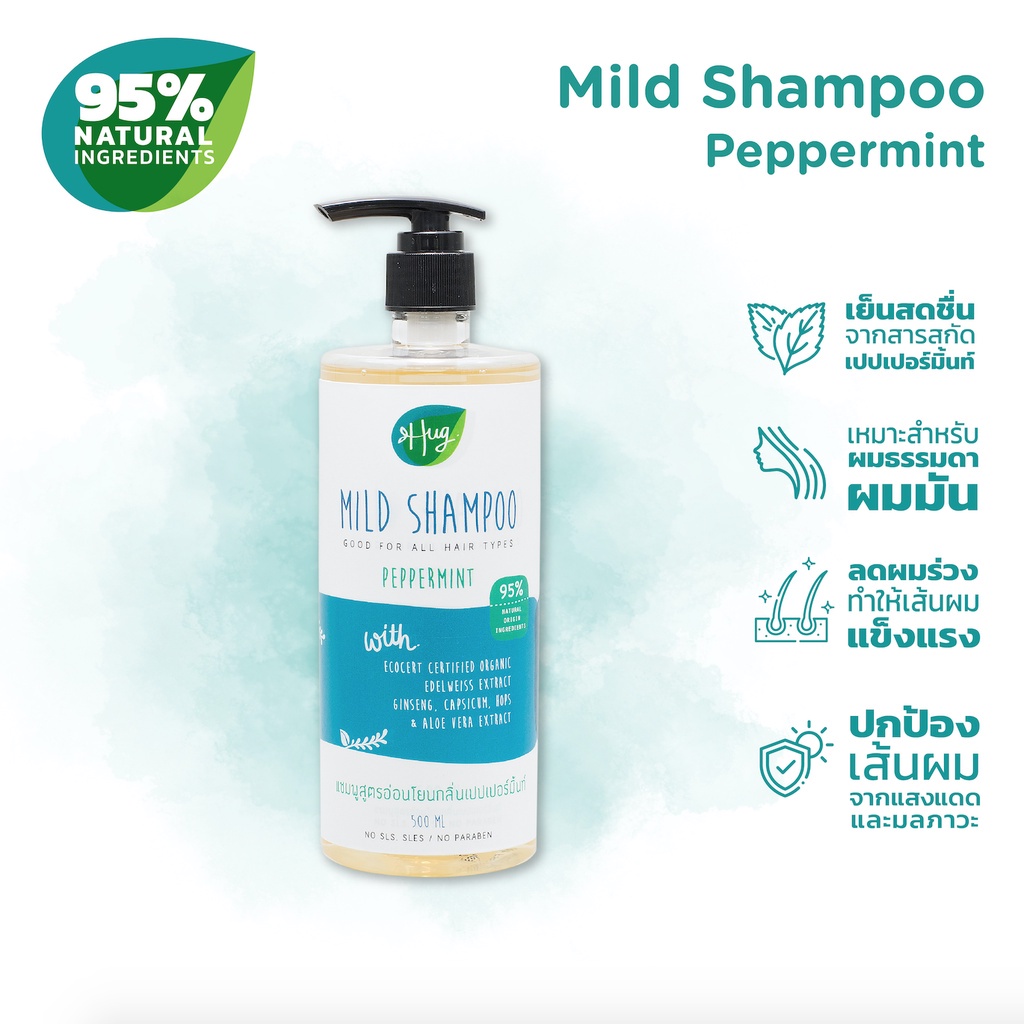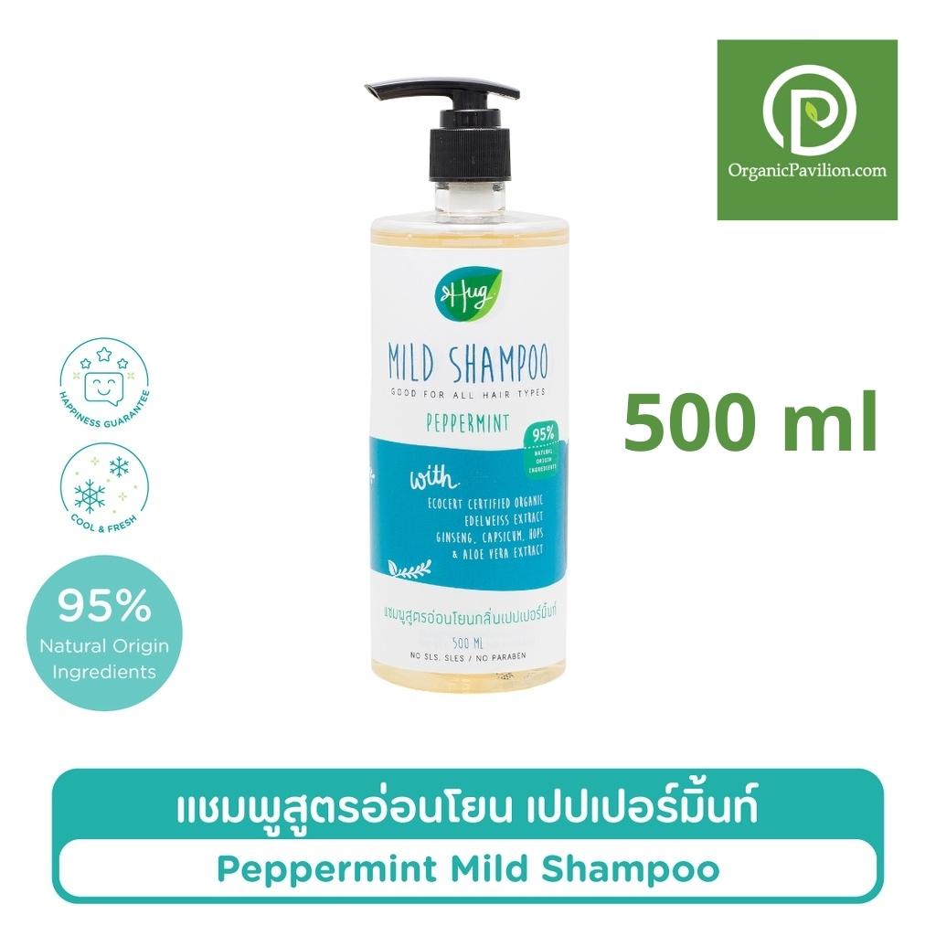 Hug ฮัก แชมพูสูตรอ่อนโยน กลิ่นเปปเปอร์มิ้นท์ Mild Shampoo Peppermint (500ml)
