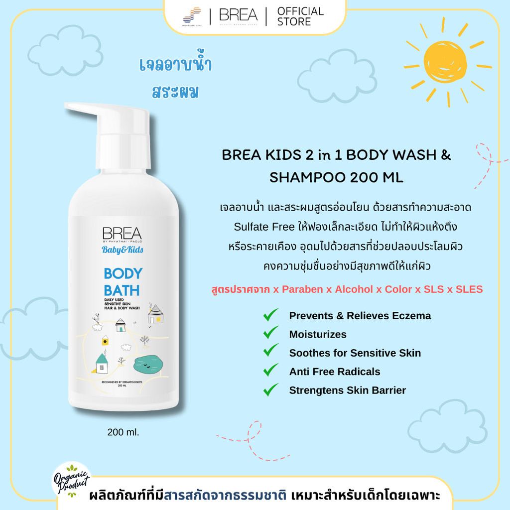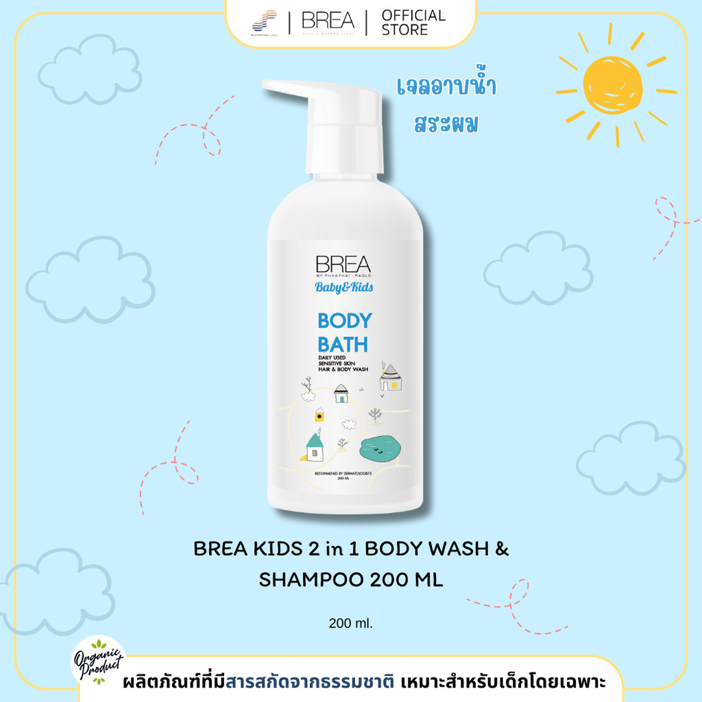 BREA KIDS 2 IN 1 BODY WASH & SHAMPOO 200 ML เจลอาบน้ำและสระผมสูตรอ่อนโยน ชิ้น