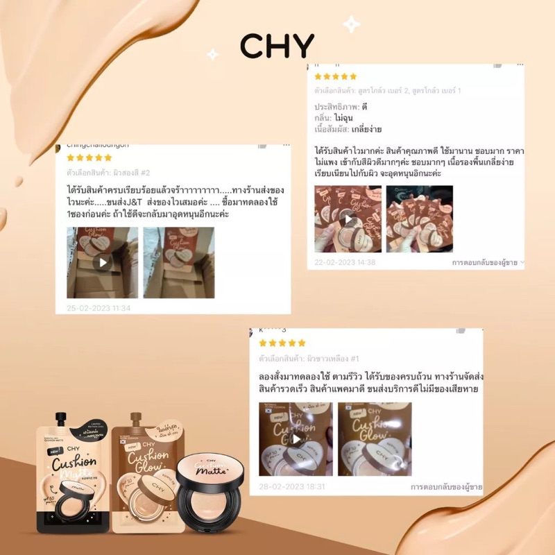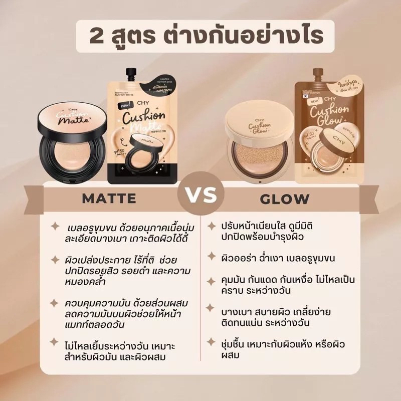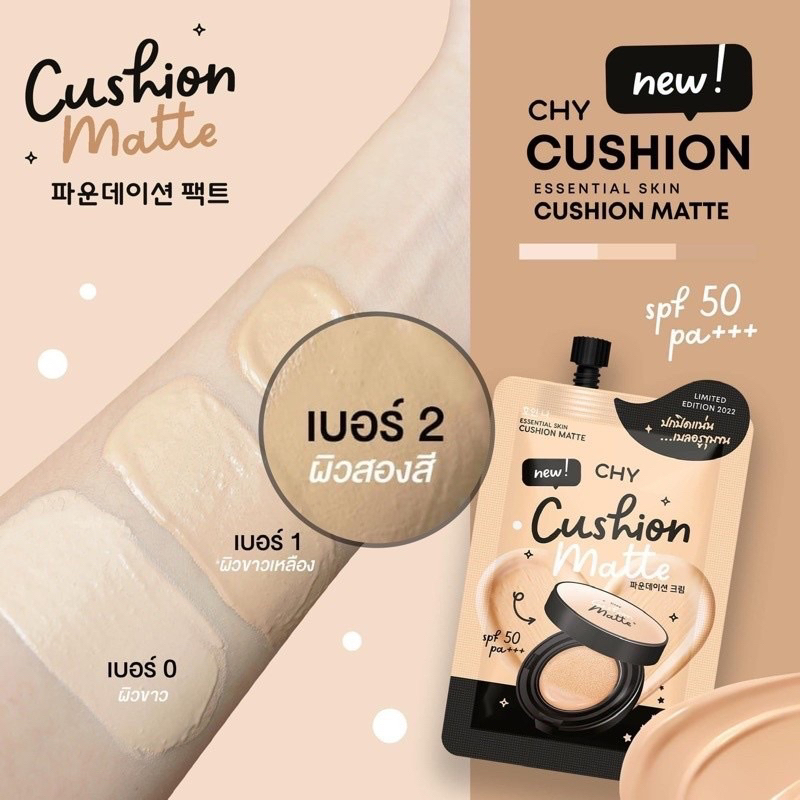 ส่งฟรี/มีไลฟ์ 1 กล่อง 5 ซอง** คุชชั่น CHY - 3 เฉดสี เนื้อแมทแต่มีความฉ่ำโกลว