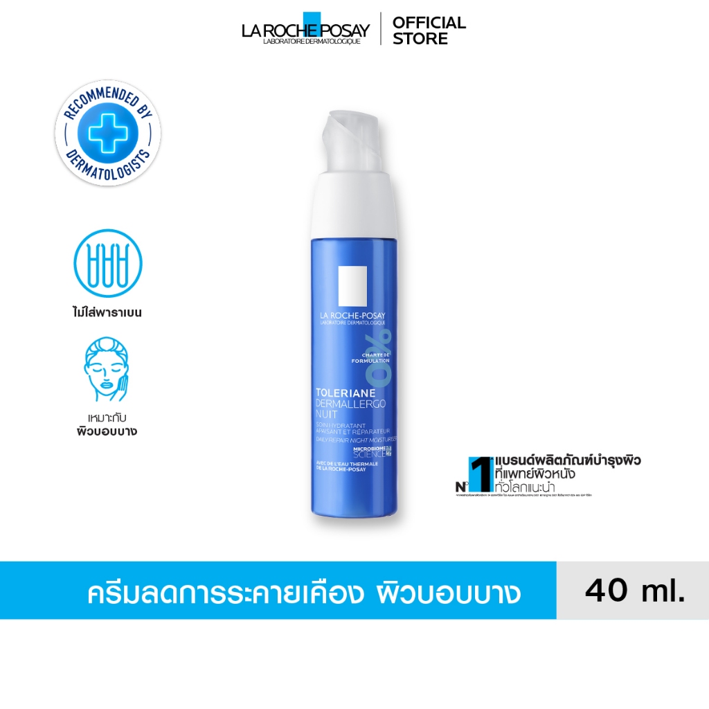 ลา โรช-โพเซย์ La Roche-Posay Toleriane DermallergoNightครีมบำรุงดูแลผิวบอบบางแพ้ง่ายสูตรกลางคืนบรรเทาอาการระคายเคือ 40ml
