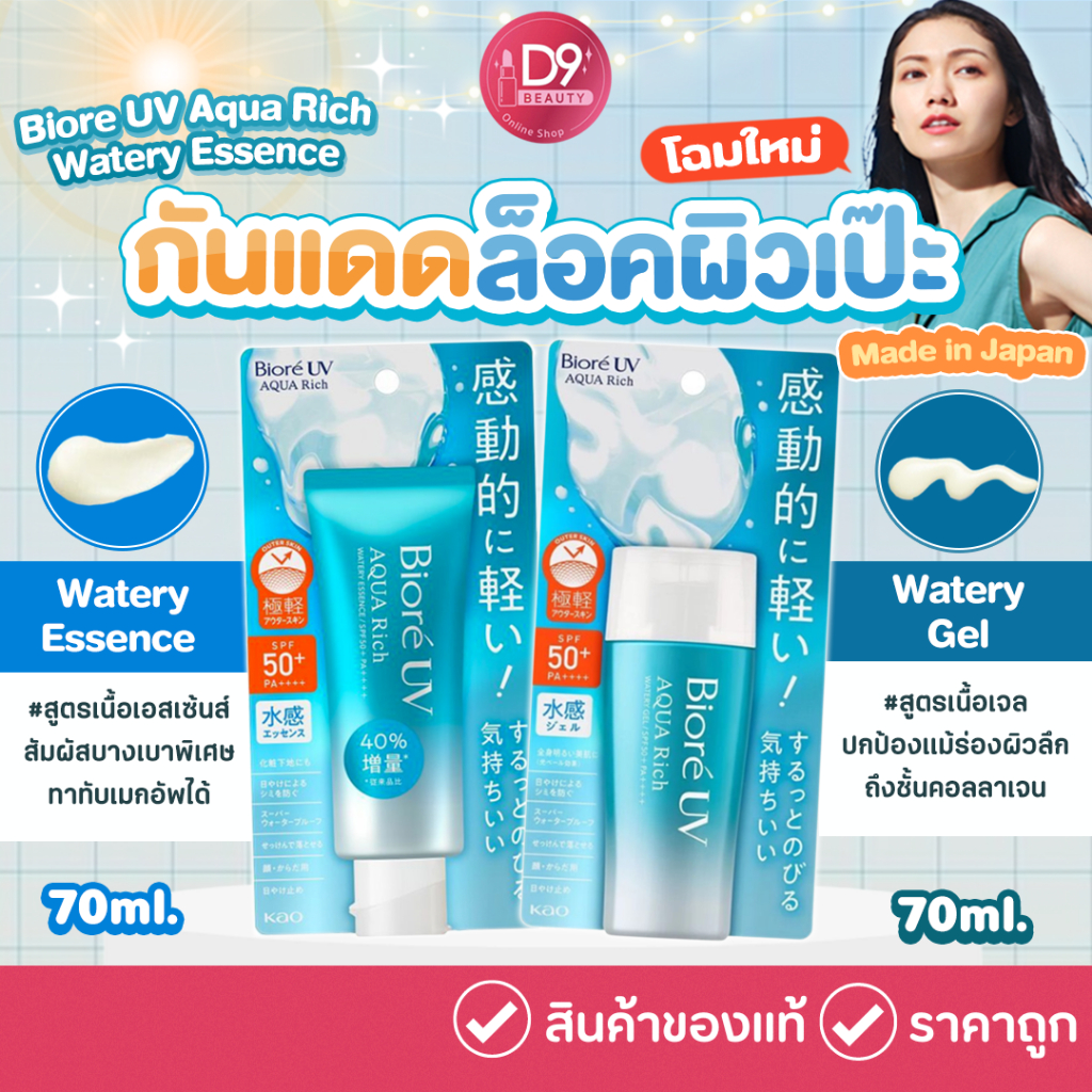 (โฉมใหม่) ครีมกันแดด Biore UV Aqua Rich Watery Essence / Gel SPF50+ PA++++