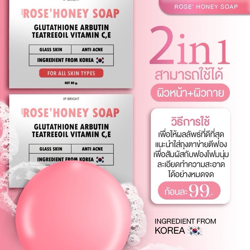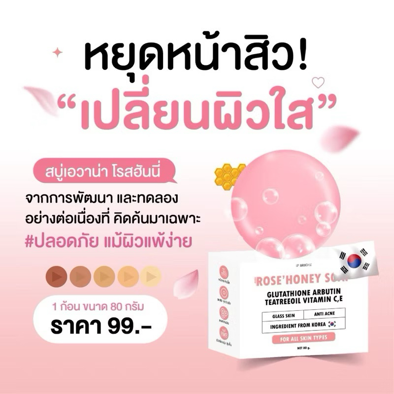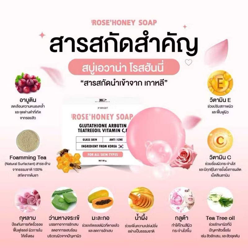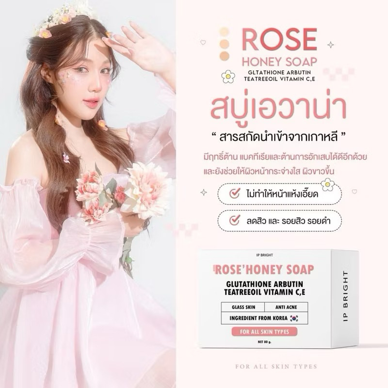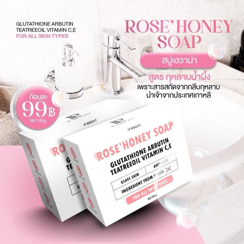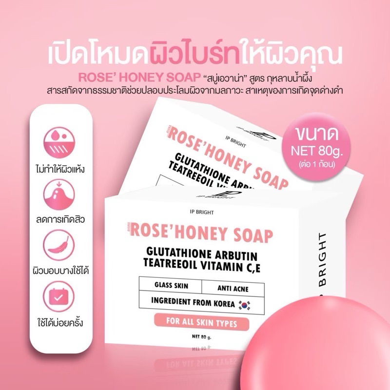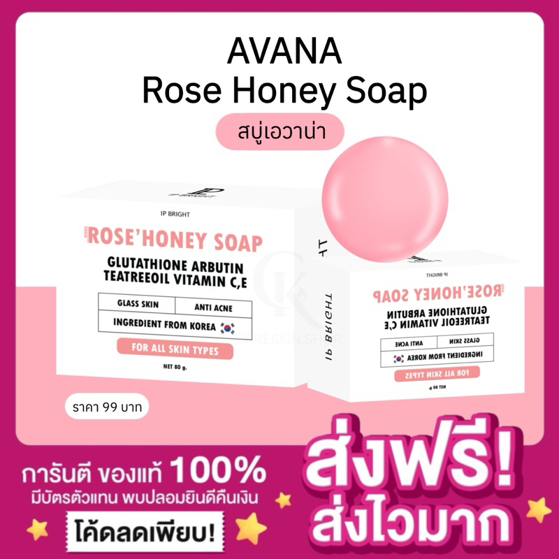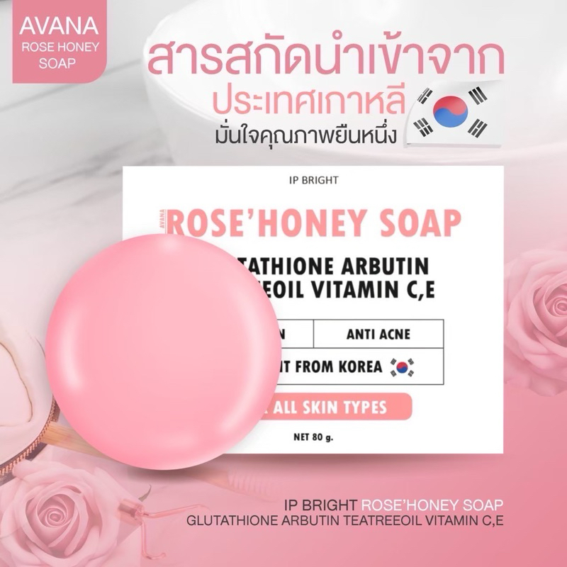[ของแท้ พร้อมส่ง🩷]สบู่เอวาน่า โรสฮันนี่ สบู่กุหลาบน้ำผึ้ง สบู่อีฟนิตา ลดสิวหน้ากระจ่างใส IP BRIGHT AVANA ROSE HONEY SOAP