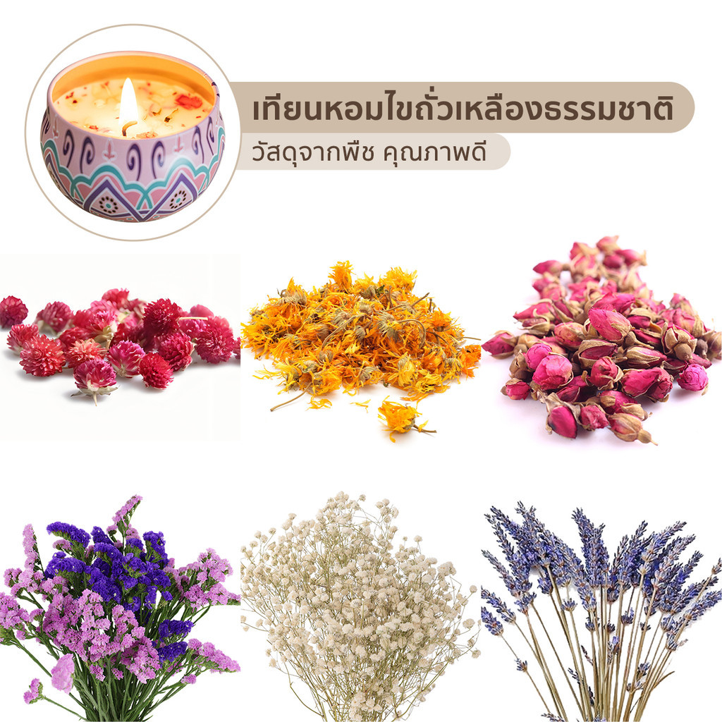 YTL เทียนหอม ตลับสีสวย มีกลิ่นหอมอโรม่า โรยดอกไม้ ทำจากไขถั่วเหลืองธรรมชาติ จุดได้นาน 20ชั่วโมง
