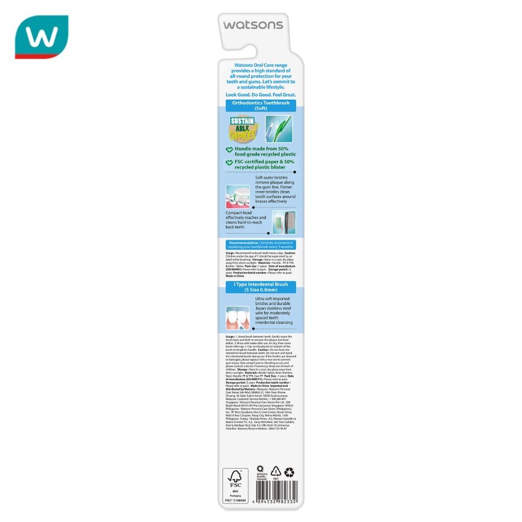 Watsons วัตสัน ชุดแปรงสีฟันสำหรับผู้จัดฟันโดยเฉพาะ