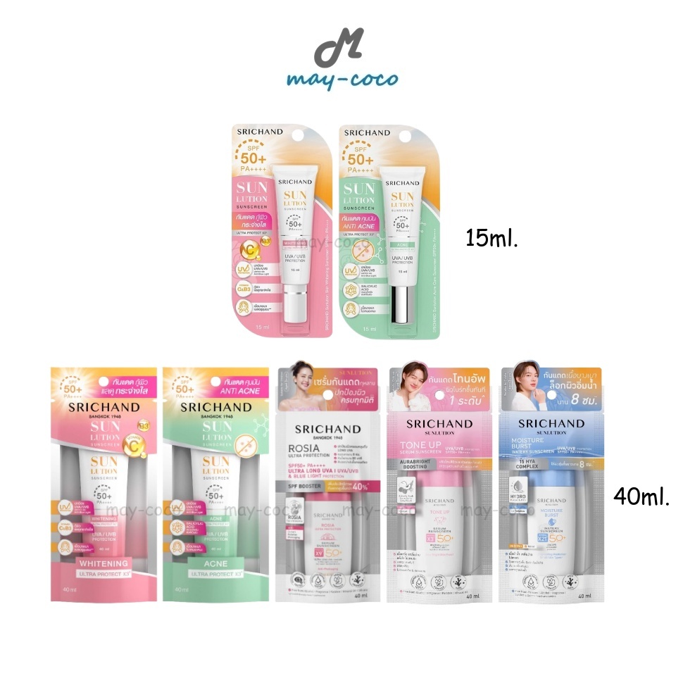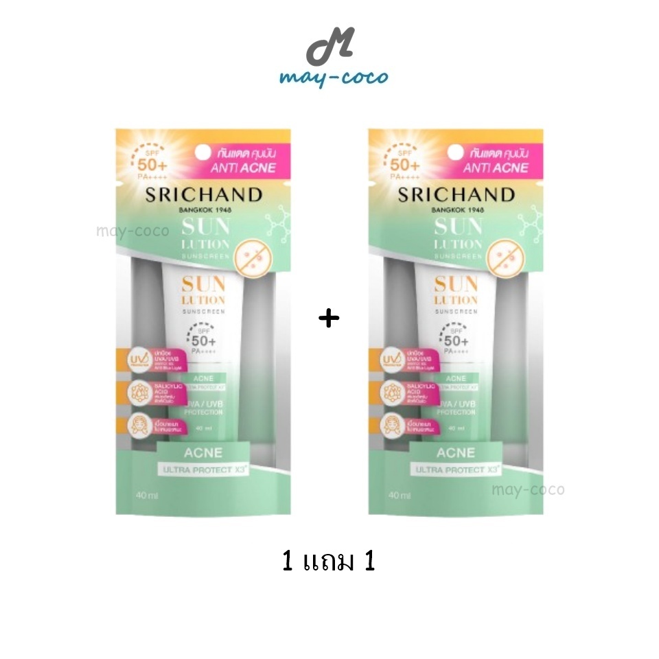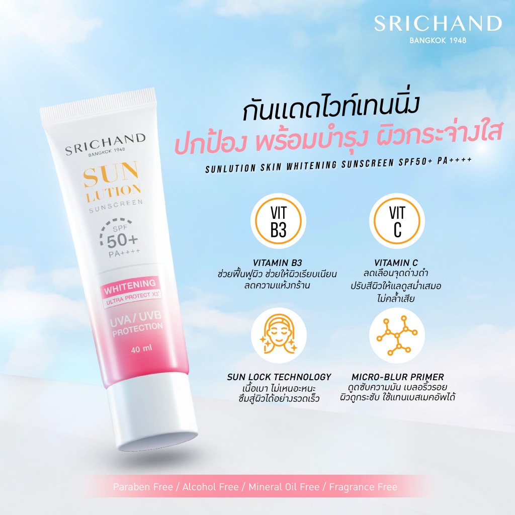 ถูก/แท้/มีไลฟ์ (หลอด) กันแดด Srichand Sunlution Skin Whitening Anti Acne Sunscreen SPF50+ กันแดดศรีจันทร์ โทนอัพ