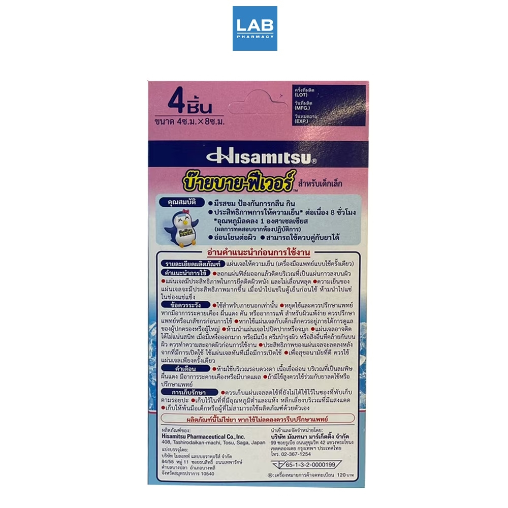 ByeBye Fever Bebies 4 sheets/box - บ๊ายบาย ฟีเวอร์ เบบี้ แผ่นเจลลดไข้ สำหรับเด็กทารก 4 ชิ้น/กล่อง