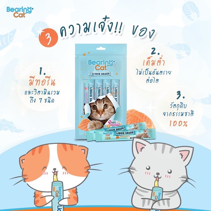 [16+4ซอง]BEARING Cat Liquid Snack ขนมแมวเลีย มนต์เรียกแมว อาหารแมว เค็มต่ำ เหมาะสำหรับแมวทานยาก 15g