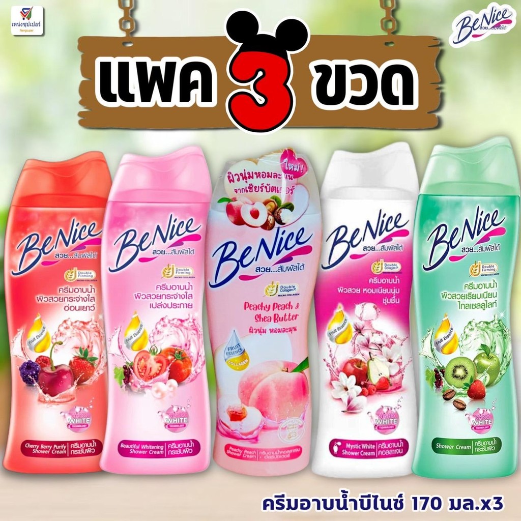 (แพค 3 ขวดกลาง) บีไนซ์ ครีมอาบน้ำ สบู่เหลว Benice Shower 170 มล.