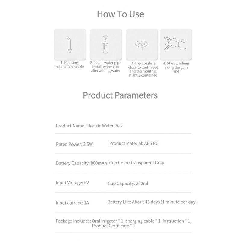 Water Flosser สมาร์ทไฟฟ้าปาก Irrigator น้ำไห มขัดฟัน 280 มล. ชาร์จ USB แบบพกพา