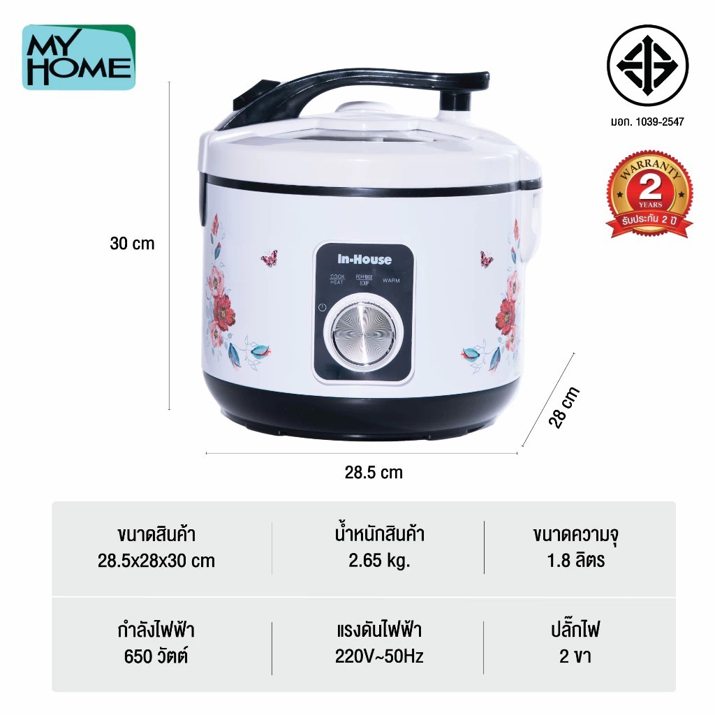 RC1804 MY HOME หม้อหุงสารพัดข้าว ALL IN ONE ขนาด 1.8L In House ขนาดใหญ่จุใจ ใช้งานง่ายแค่ปุ่มเดียว รับประกัน2ปี