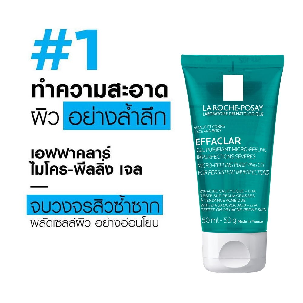 ลา โรช-โพเซย์ เอฟฟาคลาร์ ไมโคร-พีลลิ่ง เพียวริฟายอิ้ง เจล 50 มล./La Roche Posay Effaclar Micro-Peeling Purifying Gel 50M