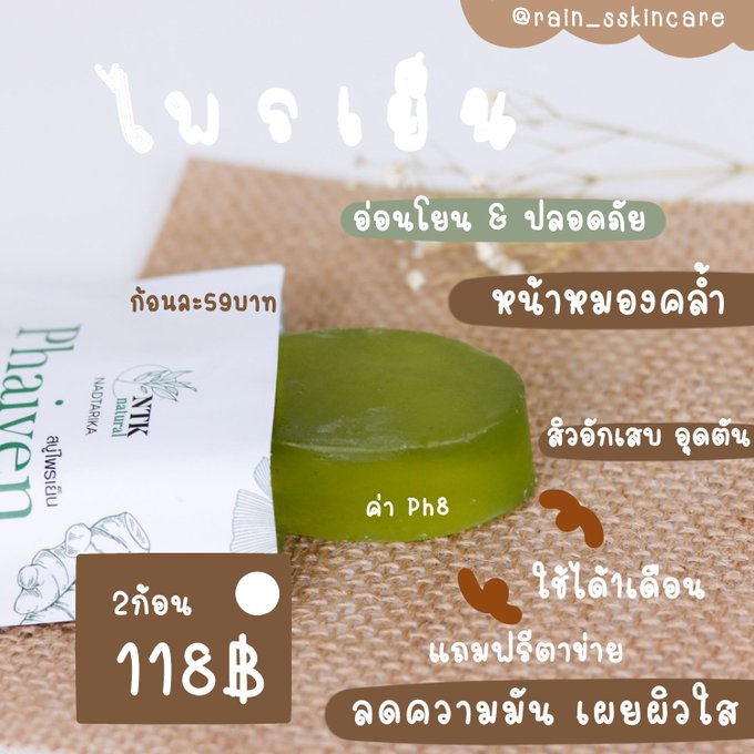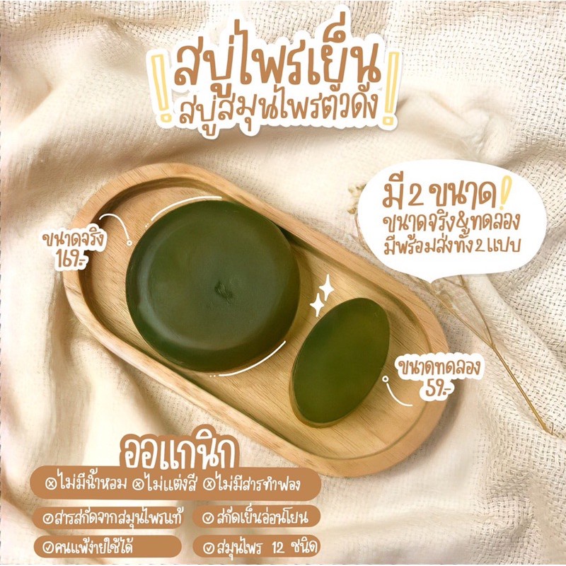 🌿สบู่ตัวดัง tiktok สบู่ไพรเย็น สบู่ล้างหน้าไพรเย็น ออแกนิก100% ของแท้ มี 2 ขนาด ไพลเย็น phaiyen khun lamyai