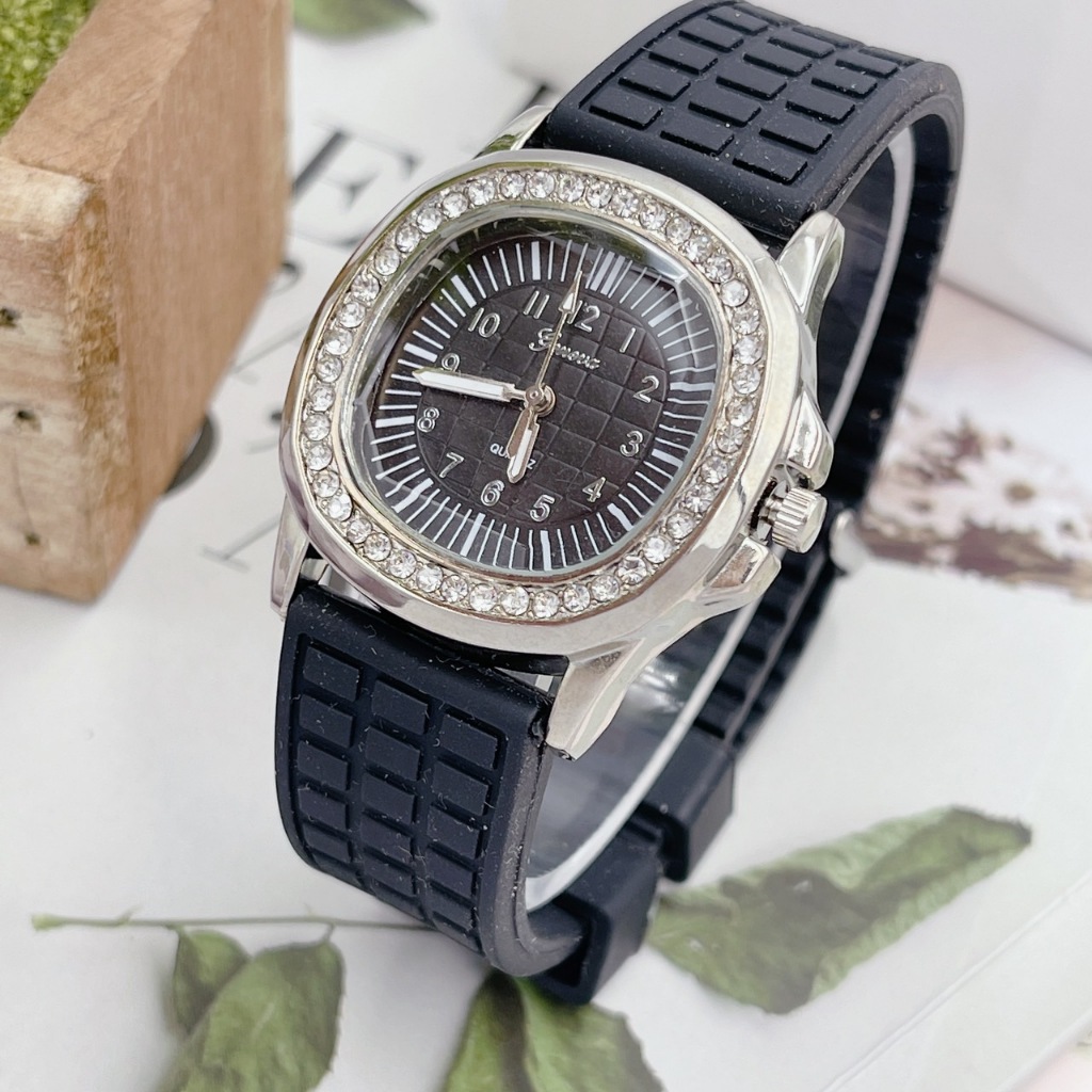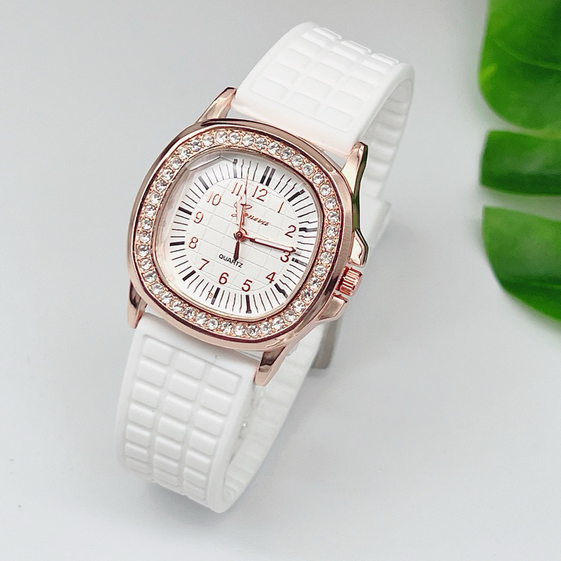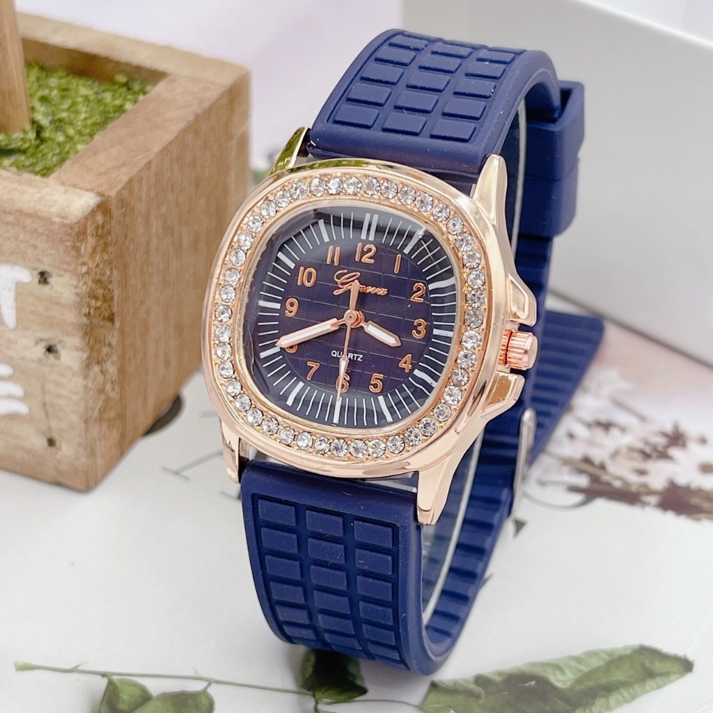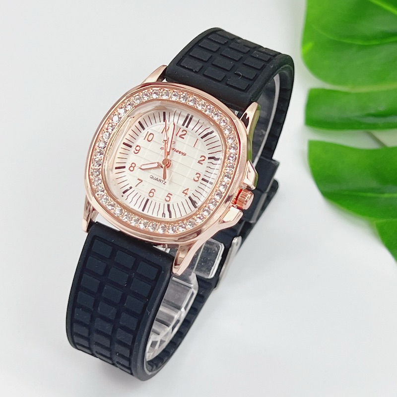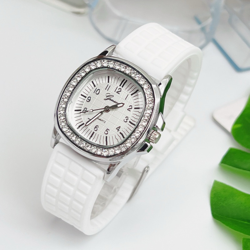 นาฬิกาข้อมือผู้หญิง Geneva นาฬิกาผู้หญิง เพชรล้อม กันน้ำ สายยาง หน้าปัด 35 มม หลายสี
