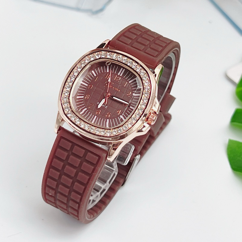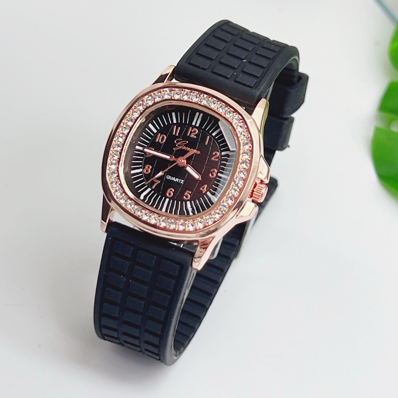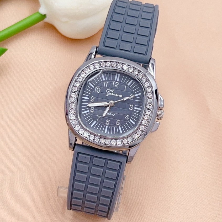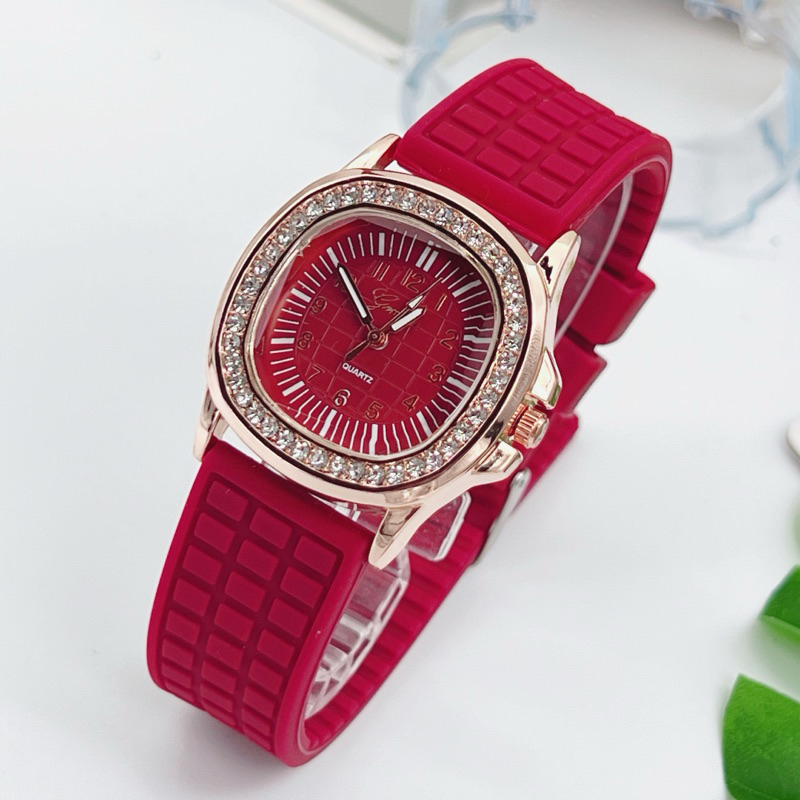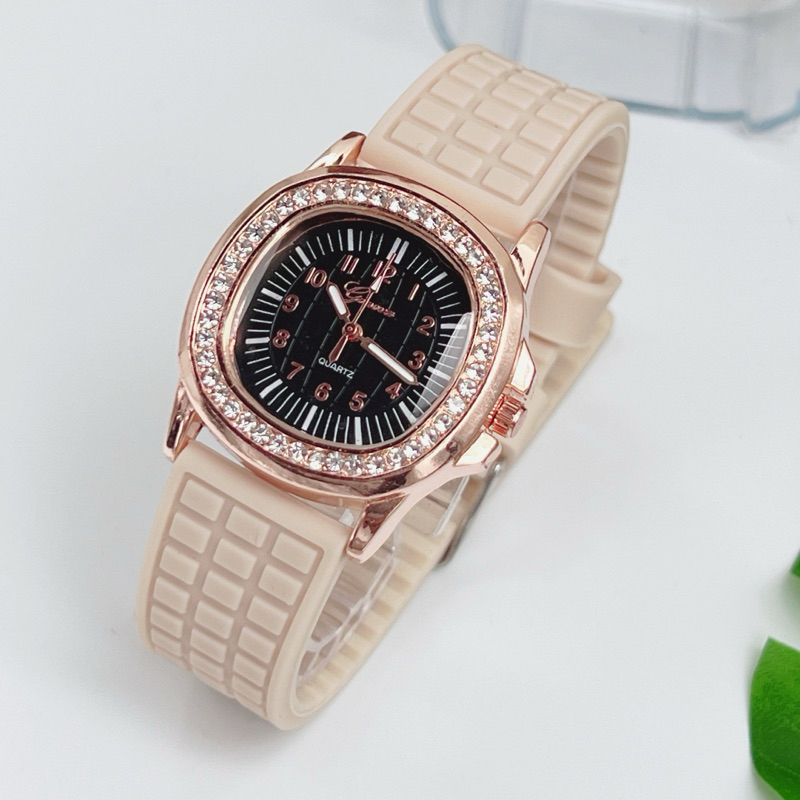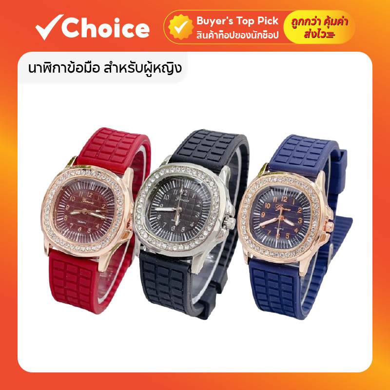 นาฬิกาข้อมือผู้หญิง Geneva นาฬิกาผู้หญิง เพชรล้อม กันน้ำ สายยาง หน้าปัด 35 มม หลายสี