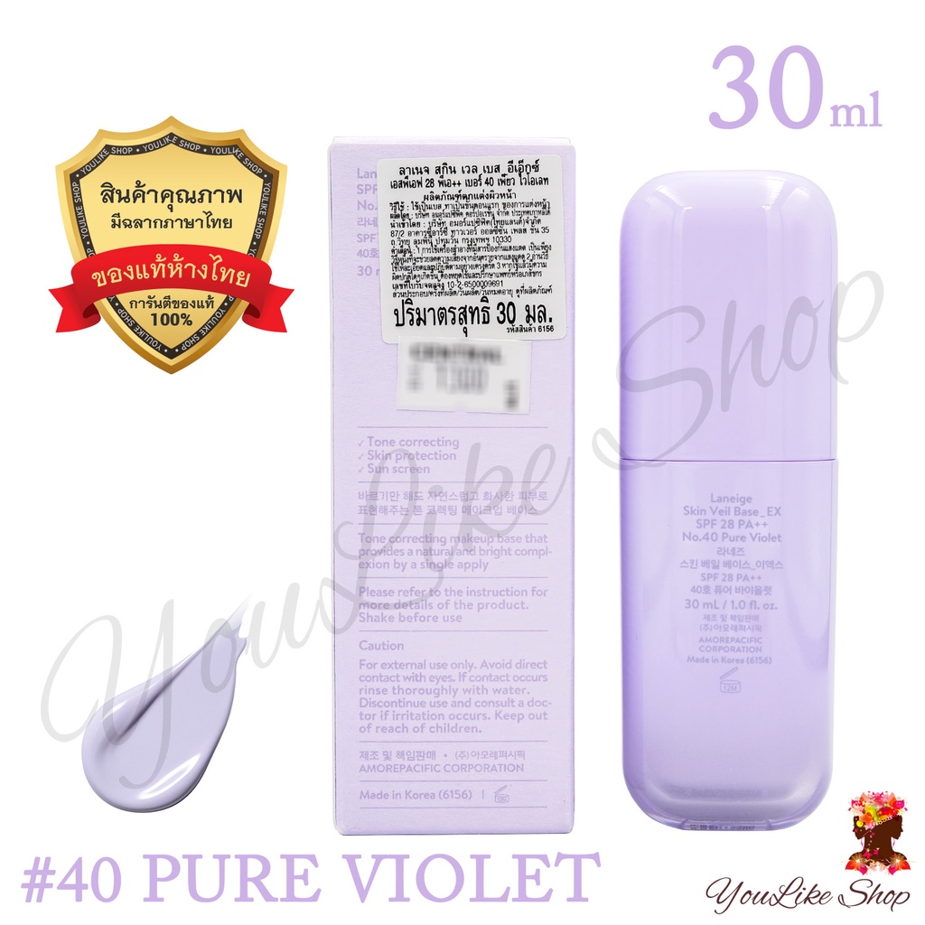 Laneige Skin Veil Base EX SPF 28 PA++ (30 ml) เบส ปรับสีผิว สูตรใหม่ล่าสุด [40 50 60 Pure Violet Mint Green]