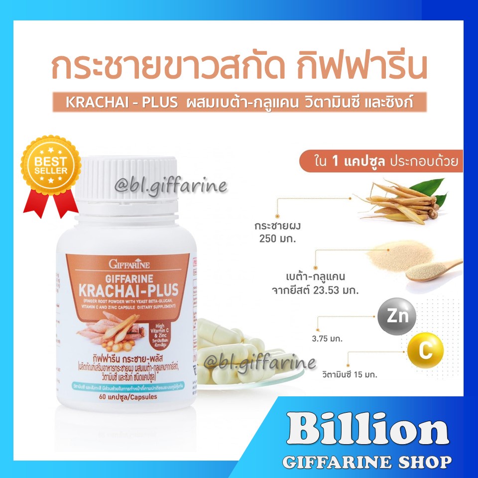 [ ส่งฟรี ] กระชายขาวสกัด ชนิดแคปซูล กิฟฟารีน กระชาย-พลัส KRACHAI-PLUS GIFFARINE